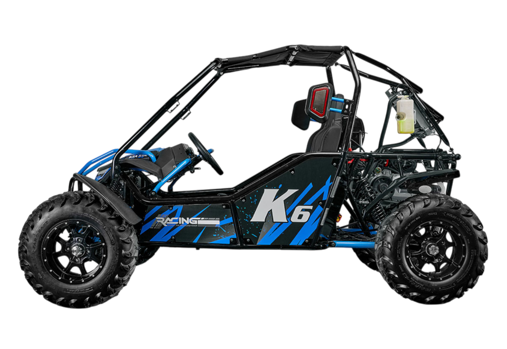 Багги К6 укомплектована привычным по багги КТА К7 и КТА К7Х двигателем 173MN с объемом 272 куб.см, но вариатор стоит нового образца с усиленным сцеплением. Новый вариатор куда быстрей раскручивается, обеспечивая резкий и уверенный старт.