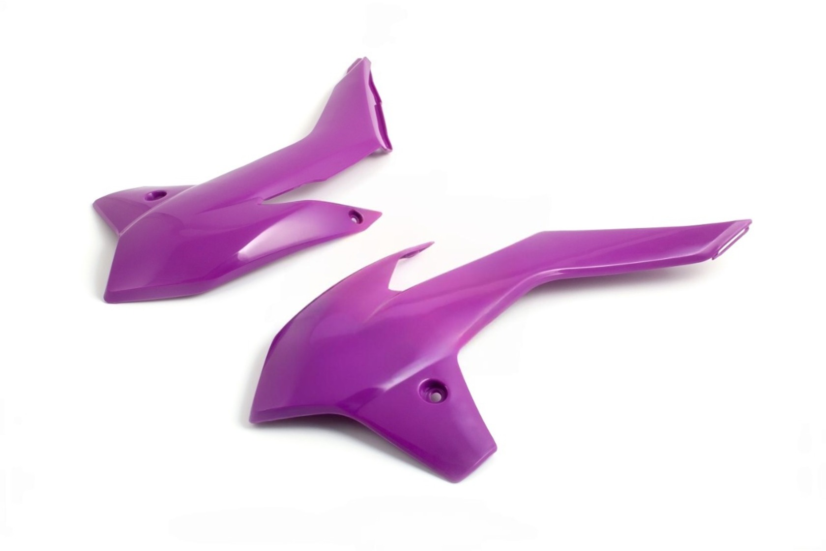 Пара фиолетовых передних обтекателей для мотоциклов KTM SX85 2013-2016 года, а также для аналогичных китайских моделей на раме K5 (таких как Kayo K1, BRZ X5 и др). Изготовлены из высококачественного ударопрочного пластика под тип KTM SX85. Полный аналог оригинальной детали KTM с артикулом 4710805400004. Обеспечивают отличную защиту и стильный внешний вид, легко устанавливаются на штатные крепления без доработок.