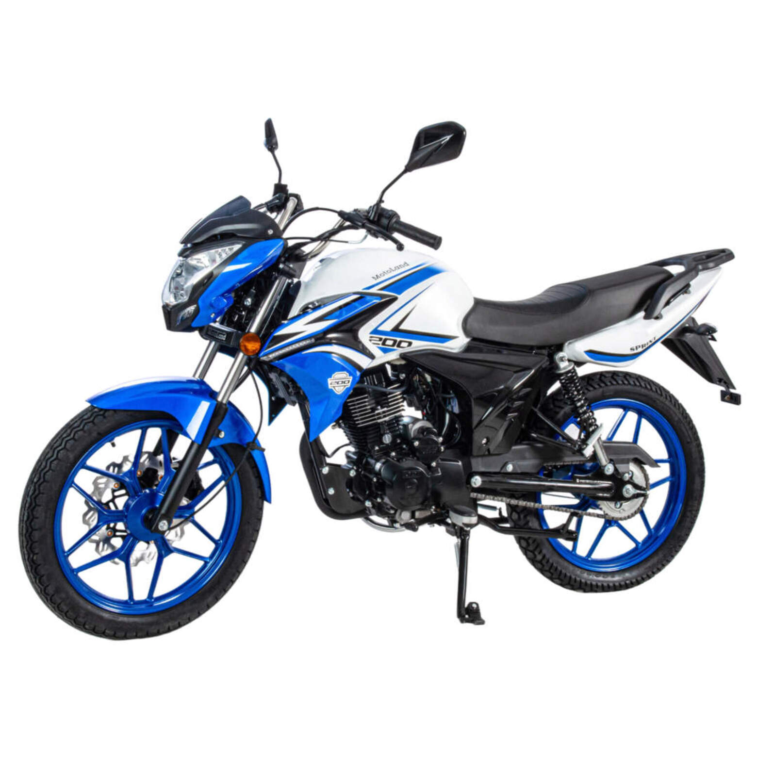 MOTOLAND SPRINT 200 - отличный вариант байка для тех, кто только решил приобщиться к мотокультуре и пересесть на двухколесную технику основательно, ведь он небольшого размера и легкий.Данный мотоцикл зачастую используется в автошколах для обучения учеников, ведь научиться водить на нем проще простого.Расход топлива 3,7л. на 100км.Мотоцикл оснащен бензиновым 200-кубовым двигателем 164FML с балансиром ,карбюраторной системой питания PZ30. Охлаждается движок воздушным путем. Механическая коробка передач пятиступенчатая. Для запуска двигателя имеется как кикстартер, так и электростартер.Работа подвески мотоцикла организована на базе стандартных компонентов: передней телескопической вилки и двух задних амортизаторов.Размер колес 18/18. Колесные диски литые
