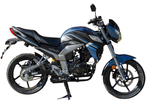 Мотоцикл Racer RC300CK-N Fighter - дорожный мотоцикл, в первую очередь ориентированный на начинающих байкеров. Отличается легкостью в управлении и сравнительно доступной ценой. 270-ти кубовый двигатель выдает 20 л.с. мощности, чего более чем достаточно для маневрирования в городских пробках. Мотоцикл получил новую 5-ти ступенчатую коробку передач, благодаря которой он стал более резвым и динамичным. Моноамортизатор обеспечивает необходимую жесткость задней подвески. Средней жесткости надежная передняя телескопическая вилка.Торможение контролируемо и эффективно благодаря двухпоршневому суппорту дискового тормоза. Посадка удобна, а электронная панель приборов с индикатором включенной передачи легко читается. Оптика выполнена из ударопрочного пластика, а задний фонарь имеет яркие LED светодиоды. Вместительный топливный бак обеспечивает хороший запас хода.