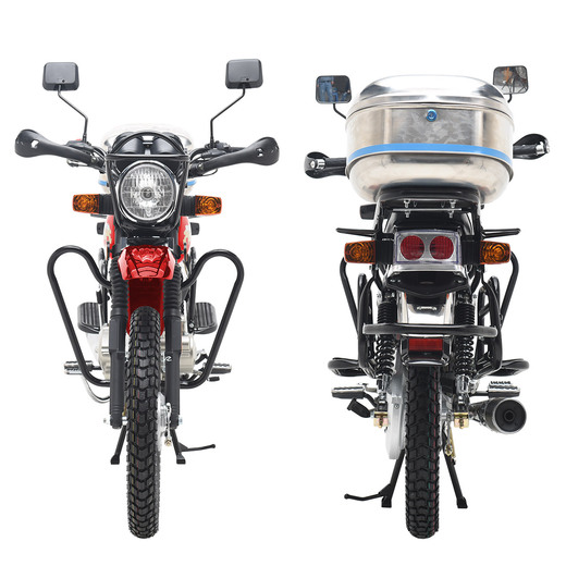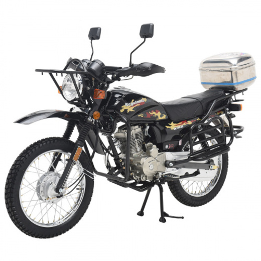Компания «Regulmoto» представляет вниманию поклонников двухколесной мототехники мотоцикл Regulmoto VIKING – надежный и доступный для многих байк с широкими эксплуатационными возможностями. Мотоцикл Regulmoto VIKING – один из ярких представителей линейки малокубатурной мототехники известного азиатского производителя Senke. Мотоциклы производства одного из крупнейших китайских концернов пользуются заслуженным признанием экспертов и мотолюбителей в различных частях света, включая Европу и Америку. Продукцию Senke отличают не только одно из лучших на рынке соотношений достойного качества и демократичной цены, но и солидный эксплуатационный ресурс, высокая надежность, простое и недорогое сервисное обслуживание.В раме мотоцикла с 18-дюймовыми колесами на литых дисках установлен 4-тактный 150-«кубовый» двигатель с воздушным охлаждением, который способен развивать максимальную мощность в 11,6 лошадиных сил. Наличие у двигателя балансирного вала способствует снижению вибрации при работе мотора. 5-ступенчатая трансмиссия, электростартер, полноценная подвеска, представленная телескопической вилкой спереди и двумя амортизаторами и маятником сзади, приборная панель и емкий топливный бак – все это позволит получать максимум удовольствия от поездки. За безопасность использования мотоцикла отвечают надежная тормозная система (дисковый тормоз спереди и барабанный сзади), комплект светового оборудования и зеркал заднего вида.