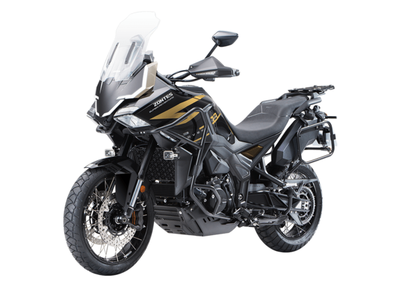 Мотоцикл ZONTES ZT350-X1 – турист со стремительным современным дизайном. Хорошо подходит как для повседневных поездок по городу, так и для покорения дальних маршрутов.Силовая установка представлена одноцилиндровым 4-тактным двигателем ZT184MP с 4 клапанами и 2 верхними распредвалами. Двигатель имеет объём 348 см³ и обеспечивает мощность в 39 л.с. Оснащён инжектором BOSCH и системой жидкостного охлаждения. Механическая коробка передач имеет 6 ступеней и схему 1-N-2-3-4-5-6. Запуск двигателя осуществляется с помощью бесключевого доступа.Ёмкость топливного бака 19 литров.Колёса представлены литыми алюминиевыми дисками диаметром 17 дюймов. На мотоцикл установлены датчики давления в шинах, показатели от которых выводятся на приборную панель. Для подвески спереди используется телескопическая вилка, сзади – моноамортизатор. Гидравлические дисковые тормоза произведены испанской компанией J.JUAN, входящей в холдинг BREMBO.Для освещения используется яркая LED-оптика, а приборная панель представлена цифровым дисплеем. Рычаги тормоза, сцепления и лапки КПП можно отрегулировать. Имеется 2 USB-порта.Габариты мотоцикла 2055х795х1330 мм. Колёсная база 1395 мм. Высота по седлу 795 мм. Вес 169 кг.