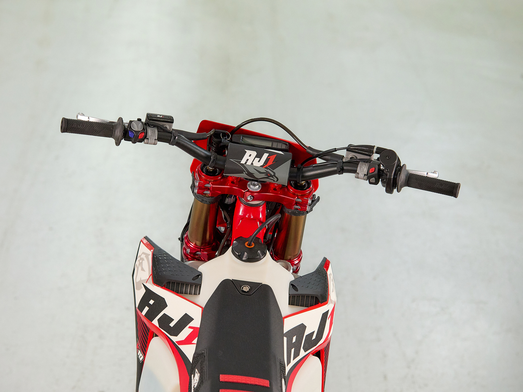 Подробнее о AX300Модифицированная подвеска разработанная AJ1 совместно с HTW, регулировать которую можно теперь без применения инструментов, «на ходу». Двухкамерная передняя вилка с закрытым картриджем (DCC) серии AJ1-T10 с диаметром пера 48 мм и длиной 940 мм, в которой используются двукомпонентные сальники SKF Италия, а также высококачественные направляющие от японской фирмы DID ЯпонияМоноамортизатором HTW T10 регулировка без инструмента с системой PDSНовые фрезерованные траверсы со всеми регулировками а также руль переменного сечением из высокопрочного алюминиевого сплава марки 7075-T6.Новая запатентованная конструкция воздушного фильтра AJ1-Pro Red. Предварительно пропитанный смазкой - фильтр специально создан для обеспечения максимального потока воздуха, сделанный из негорючего материала.Новые радиаторы и дефлекторы воздуха позволили повысить набегающий поток и улучшить охлаждение при движении.Широкие фрезерованные подножки AJ1 из алюминиевого сплава, со сменными шипами из нержавеющей стали.Обода из алюминия 7050-T6 в стандартной комплектации имеют подшипники NSK, 4-мм спицы из нержавеющей стали и алюминиевыми ниппелями в сочетании с новыми шинами AJ1 soft compound обеспечивает постоянное сцепления колес в разных дорожных условиях.Размер колес: перед – 80/100-21 зад – 120/100-18Новый алюминиевый маятник без прогрессии + направлющими с низким коэффициентом трения обеспечивает лучший контроль и экономию веса, необходимую на треке и в горах.Запатентованная тормозная система AJ1 зарекомендовавшая себя, как лучшая в классе, великолепно работающая с тормозными дисками нового дизайн и синтетическими спеченными тормозными колодками Elig Тайвань. Спереди установлен двухпоршневой суппорт AJ1 в сочетании с диском диаметром 260 мм. Сзади – однопоршневой суппорт с диском диметром 220 ммВ стандартную комплектацию входит новая алюминиевая складывающаяся боковая подставку нового дизайна, а также фирменное сиденье AJ1Anti Skid, выполненным из нескользящего материала со специальными прорезиненными вставками.Ведомая звезда AJ1 520 на 52 зубаВыхлопная титановая система AJ1 с Power Bomb и DB-Killer (съёмный) легче на 1 кг предыдущих выхлопных систем от AJ1.