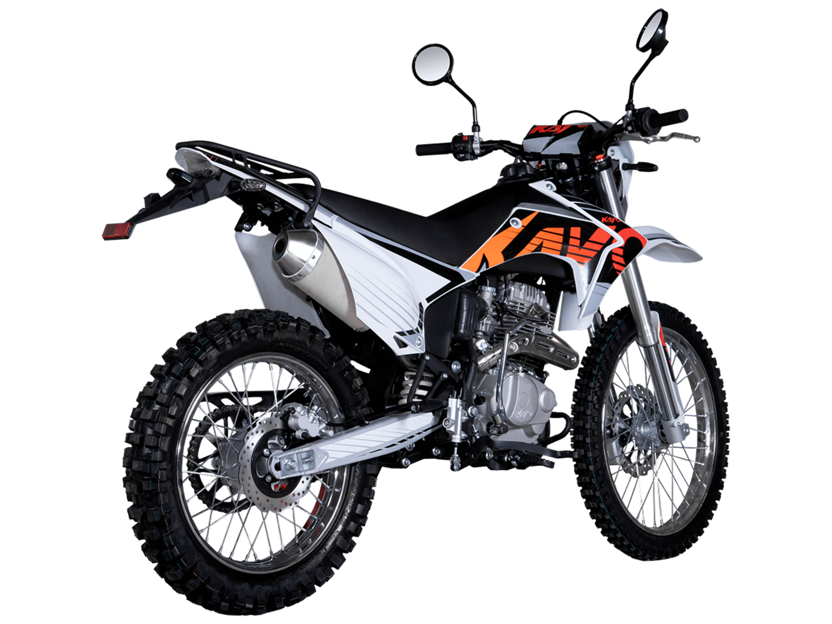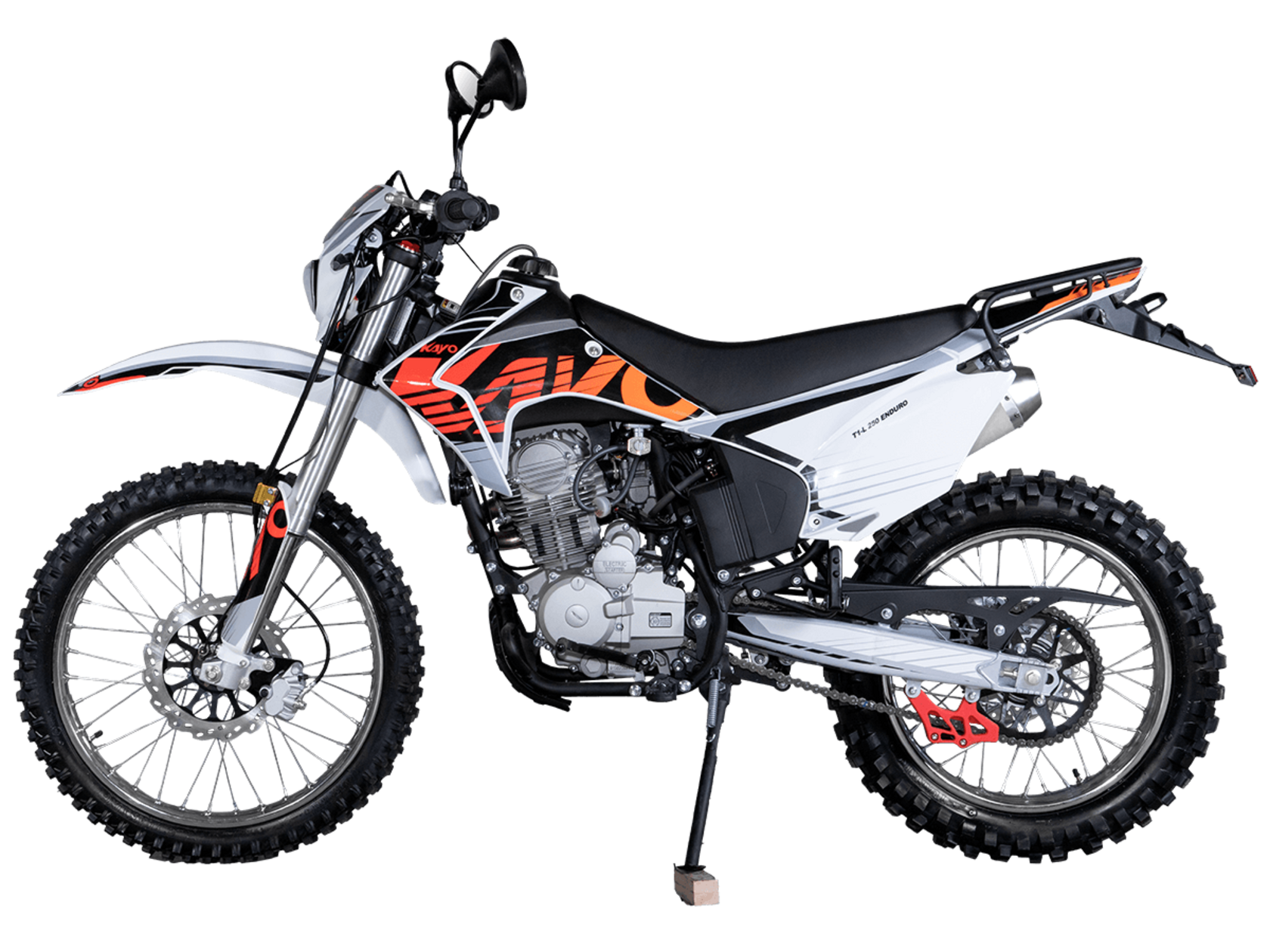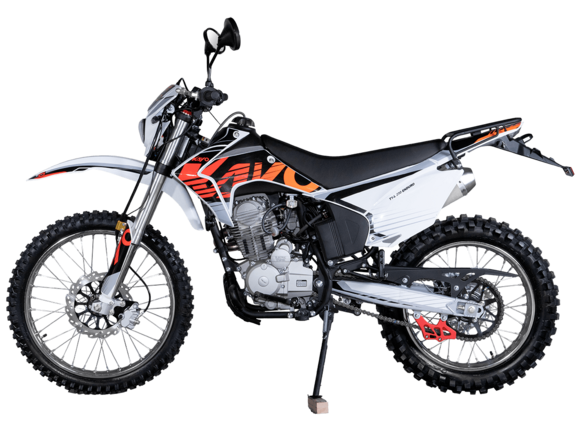 Мотоцикл KAYO T1-L 250 Enduro 21/18 2025 ПТС – облегчённая модель надёжного и производительного эндуро, уже готовая к покорению внедорожных трасс.Оснащён 4-тактным двигателем объёмом 223 см³ с верхним распредвалом и воздушным типом охлаждения. Способен развивать мощность в 16,32 л.с. при 8500 об/мин, а максимальный крутящий момент 17,5 Нм достигается при 6500 об/мин. За подачу топлива отвечает карбюратор PE30. Он обеспечивает топливную экономность и бесперебойную работу двигателя даже в самых жёстких условиях. Соотношение диаметра цилиндра и хода поршня 65,5x62,2. Степень сжатия 9,6:1. Запуск двигателя осуществляется с помощью электростартера или кикстартера. Тип зажигания CDI. Снизу установлена пластиковая защита двигателя.Механическая коробка передач имеет 5 ступеней. Привод цепной. Объём топливного бака 9 литров.На мотоцикл установлены спицованные колёса с алюминиевыми ободами и ступицами. Обуты во внедорожные покрышки YUANXING 80/100-21 и 110/100-18.Длина подвески спереди 830 мм, длина задней подвески 370 мм. Задняя подвеска оснащена прогрессией. Траверсы выполнены из литого алюминия, а прогрессия – из стали. За торможение отвечают дисковые гидравлические тормоза.Прочная рама и маятник выполнены из стали. Мотоцикл имеет ПТС и оснащён всем необходимым для поездок по дорогам общего пользования: галогеновая фара, диодные поворотники, диодный стоп-сигнал, звуковой сигнал, цифровая приборная панель, зеркала заднего вида.Для управления установлен руль переменного сечения 28 мм Fatbar со стандартными рычагами сцепления и тормоза. Имеется платформа для перевозки грузов и дополнительные подножки для поездок с пассажиром.Габариты мотоцикла 2100х810х1180 мм, вес 115 кг. Клиренс 300 мм, колёсная база 1400 мм, высота по седлу 890 мм.