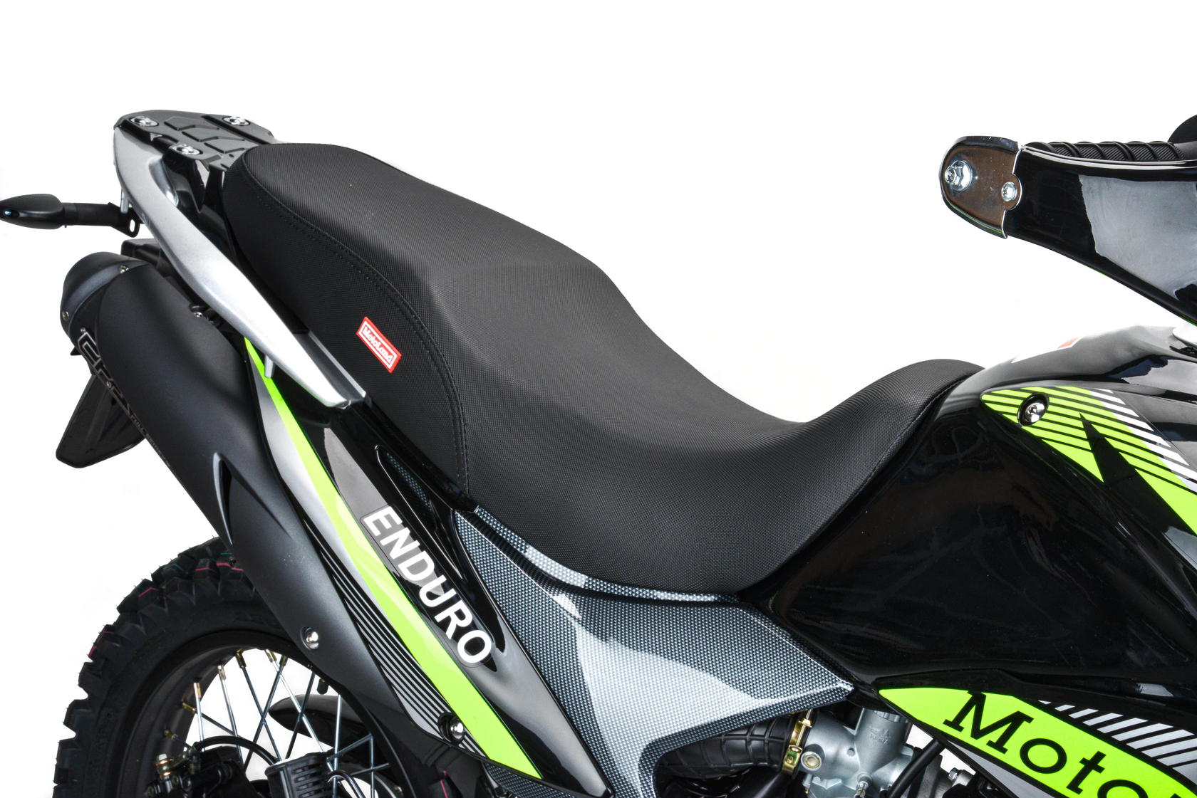 Прочность, мощь и надежность – вот ключевые характеристики кроссового мотоцикла 300 ENDURO ST NEON от бренда MOTOLAND. Этот байк представляет собой идеальное сочетание высоких технологий и безупречного дизайна, созданного для тех, кто стремится преодолевать любые трудности на дороге.Одной из важнейших особенностей этой модели является ее мощный двигатель с рабочим объемом 300 см3 и маркировкой 175 FMN PR5. С мощностью в 25 лошадиных сил и балансирным валом, этот мотоцикл готов преодолевать самые сложные трассы.Что касается трансмиссии, то здесь применена механическая передача с пятью ступенями и цепным ГРМ, что обеспечивает плавное переключение передач и высокую надежность в эксплуатации.Система охлаждения воздушно-масляная, что дает эффективное охлаждение двигателя в самых экстремальных условиях. А при запуске мотоцикла вы сможете воспользоваться как электростартером, так и кикстартером, делая его надежным в любой ситуации.Карбюратор PZ34 и свеча зажигания D8EA гарантируют оптимальную работу двигателя на любых режимах, а использование бензина с октановым числом 92 обеспечивает экономичный расход топлива.Этот мотоцикл оснащен спицованными металлическими колесами размером 90х100 R21 спереди и 110х100 R18 сзади, что обеспечивает отличное сцепление с дорогой и устойчивость на пересеченной местности.Приборная панель выполнена в формате LCD, отображая ярко и четко информацию о состоянии мотоцикла. А линзованная диодная фара и задний стоп-сигнал гарантируют безопасность в ночное время и обозначают ваше присутствие на дороге.