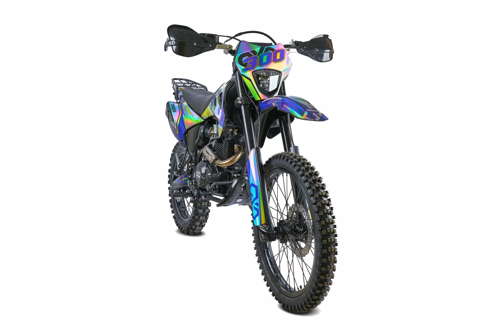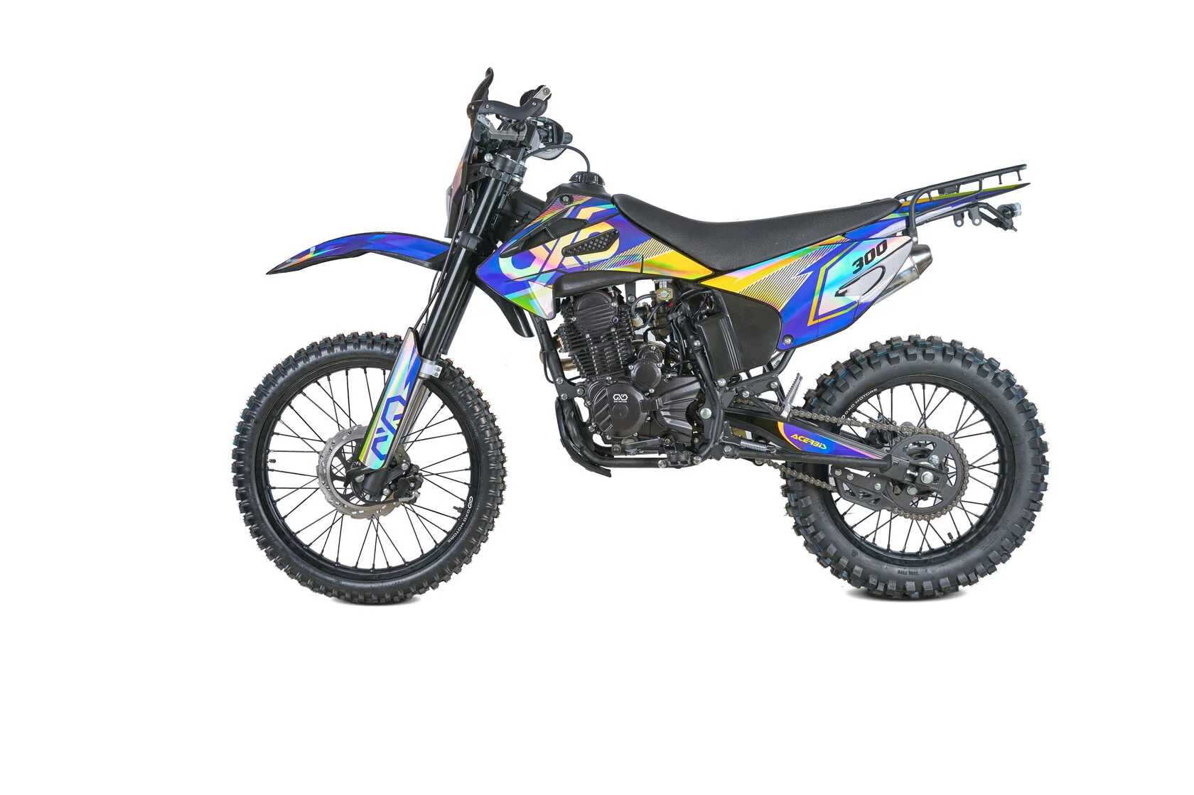 ДвигательДвигатель ZS175FMN 271 куб см с воздушным охлаждением выдаёт максимум мощности. Характеризуется хорошей тягой с самых низов и лёгким пуском с помощью электростартера. Повышенная износостойкость и качественные детали изделия позволяют применять к нему самые жёсткие требованияРамаРама мотоцикла OXO производится из труб шестигранного сечения хром-молибденовой стали, которая является очень прочной и легкой. Геометрия рамы, благодаря правильно выверенному центру тяжести и углу наклона вилки - способствует наилучшей управляемости устойчивости мотоцикла на низкой скорости.ПодвескаПередняя вилка перевернутого типа. Мотоцикл LITE 300 снабжен моноамортизатором, который соединен посредством системы рычагов прогрессии. Система прогрессии, обеспечивает равномерную, мягкую работу и увеличивает длину рабочего хода подвески.КолесаВ переднем и заднем колесах установлены антибуксаторы, которые притягивают покрышку к ободу, позволяя ездить по бездорожью при низком давлении в камерах, не давая покрышке проворачиваться во время езды.Размер передней покрышки: 80/100-21. Размер задней покрышки: 120/100-18. Они прекрасно себя ведут по песку и грязи, что позволяет райдеру отлично показать себя на пересеченной местности.Тормозная системаТормозная система мотоцикла - полностью гидравлическая с армированными шлангами. Спереди установлены двухпоршневой суппорт. Задняя тормозная система представлена в виде однопоршневого суппорта. Данная конфигурация тормозных механизмов, позволит быстро и безопасно остановиться с максимальной скорости даже на бездорожье.РульВажная часть современного эндуро мотоцикла - усиленный руль переменного сечения. Алюминиевая ручка газа с коротким ходом имеет регулировку троса. Также мотоцикл укомплектован электронной панелью приборов..