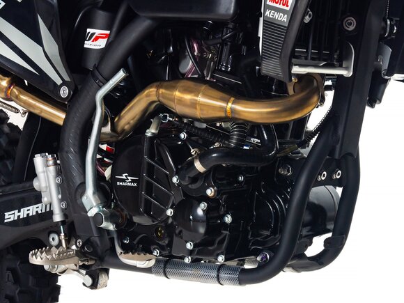 Новый уровень качества в мире эндуро. Sharmax Expertpro 300 enduro — один из самых мощных байков от компании Sharmax Motors. Отзывчивый и надёжный, мотоцикл ExpertPro 300 подарит ощущение превосходства на любой трассе. Премиальное качество и проверенные технологии легли в основу этой новинки 2023 года. Мотоцикл Sharmax ExpertPro 300 был создан для тех, кто не боится добиваться новых вершин.Мотор 174 FMN5 от концерна Zongshen — 280 кубиков и 27 л. с. разгонят байк до максимума с самого старта. За цепь не переживайте, даже от такого резвого мотора 520 CHOHO GOLD не порвётся.5-ступенчатая коробка передач с шестернями из высокопрочного кованого металла почти не изнашивается с течением времени. Лапка переключения — алюминиевая и складная, не пострадает даже в случае жёсткого приземления.Nibbi PWK 32 — лучший в своём классе. Карбюратор от легендарного американского бренда, установленный на десятках лучших эндуро байков во всём мире. Топливная смесь высшего качества наполнит цилиндры за долю секунды и обеспечит быстрый старт даже в лютый холод.Подвеску Sharmax ExpertPro 300 можно настроить под любую поверхность без потери качества. Передняя вилка (с клапаном сброса воздуха) перевёрнутого типа имеет регулировки демпфирования, сжатия и отбоя, а задняя — ещё и с регулировкой преднатяга пружины. Надёжная подвеска поможет не вилять на поворотах и стабильно проходить все сложные участки трассы.Хотите быть на шаг впереди? С быстрым и надёжным электростартером вам нужно лишь нажать кнопку, чтобы продолжить гонку. Проверенный привод и мощный двигатель стартера дадут несколько драгоценных секунд преимущества и сэкономят время в самый важный момент.Sharmax Motors ExpertPro 300 оборудован жидкостным охлаждением с датчиками температуры, он включает дополнительные вентиляторы при достижении критических показателей. Помпа повышенной производительности не даст вам “закипеть” даже в +40C.Идеальная геометрия. Симметричная дуплексная рама из хроммомолибденовой стали, позаимствованная у профессиональных гоночных байков, обеспечит оптимальную жёсткость и отзывчивость. Благодаря такой форме райдер и байк становятся одним целым, с лёгкостью преодолевая любые препятствия трека.Статус премиального эндуро байка дополняет эргономичный конический руль. Материал — высокопрочный алюминий. Грипсы мягкие и не скользят, защита для рук выдержит сотни падений. Вам останется лишь уверенно схватиться за руль и полететь вперёд со скоростью ветра.