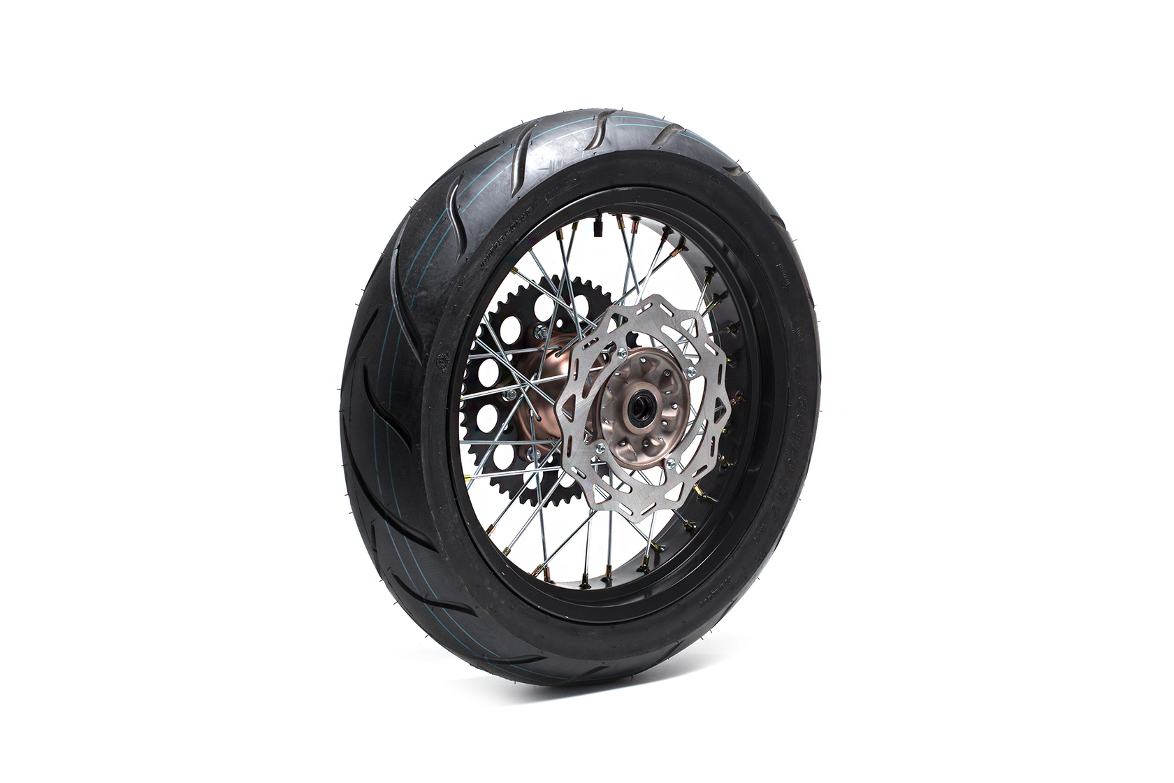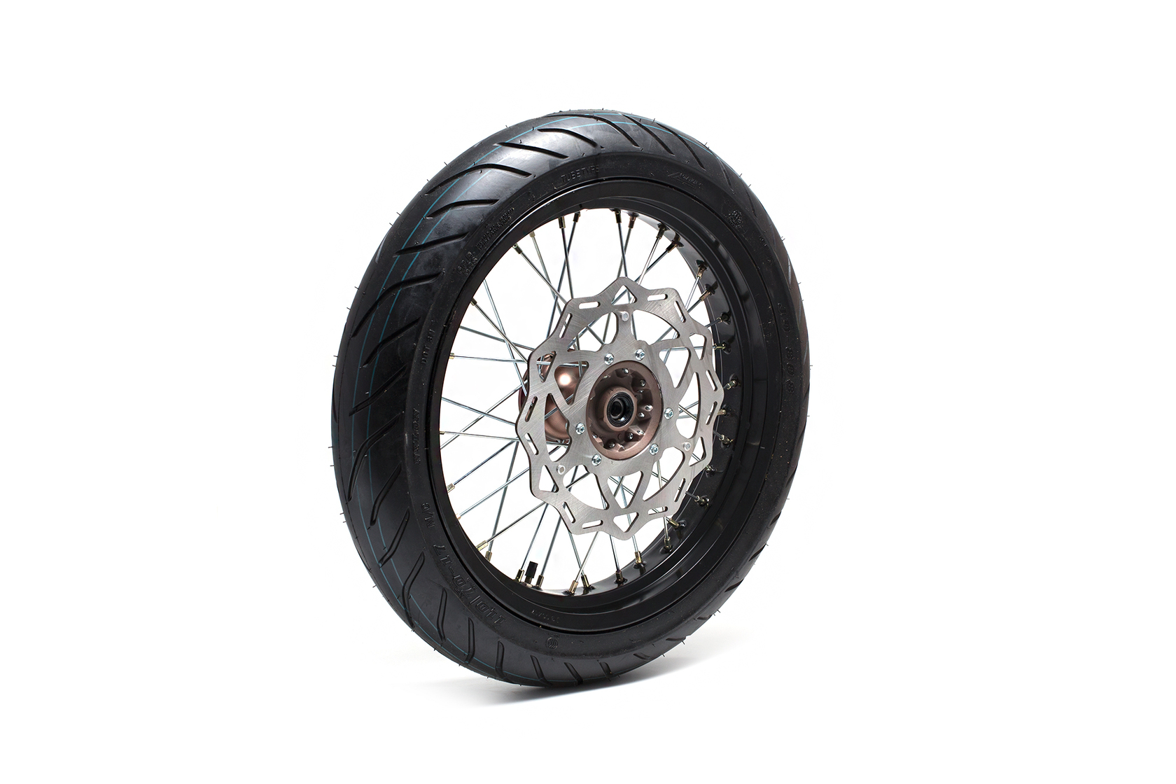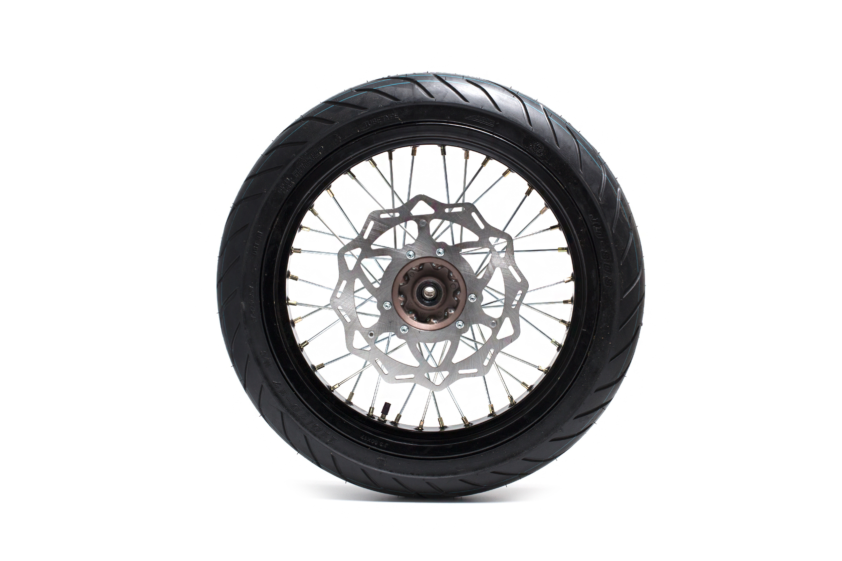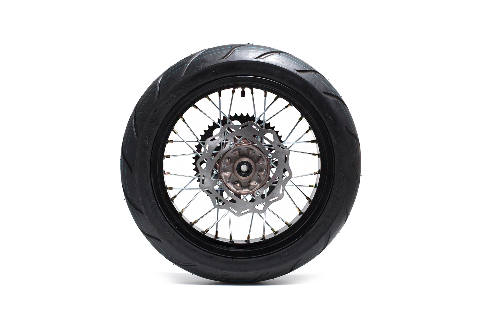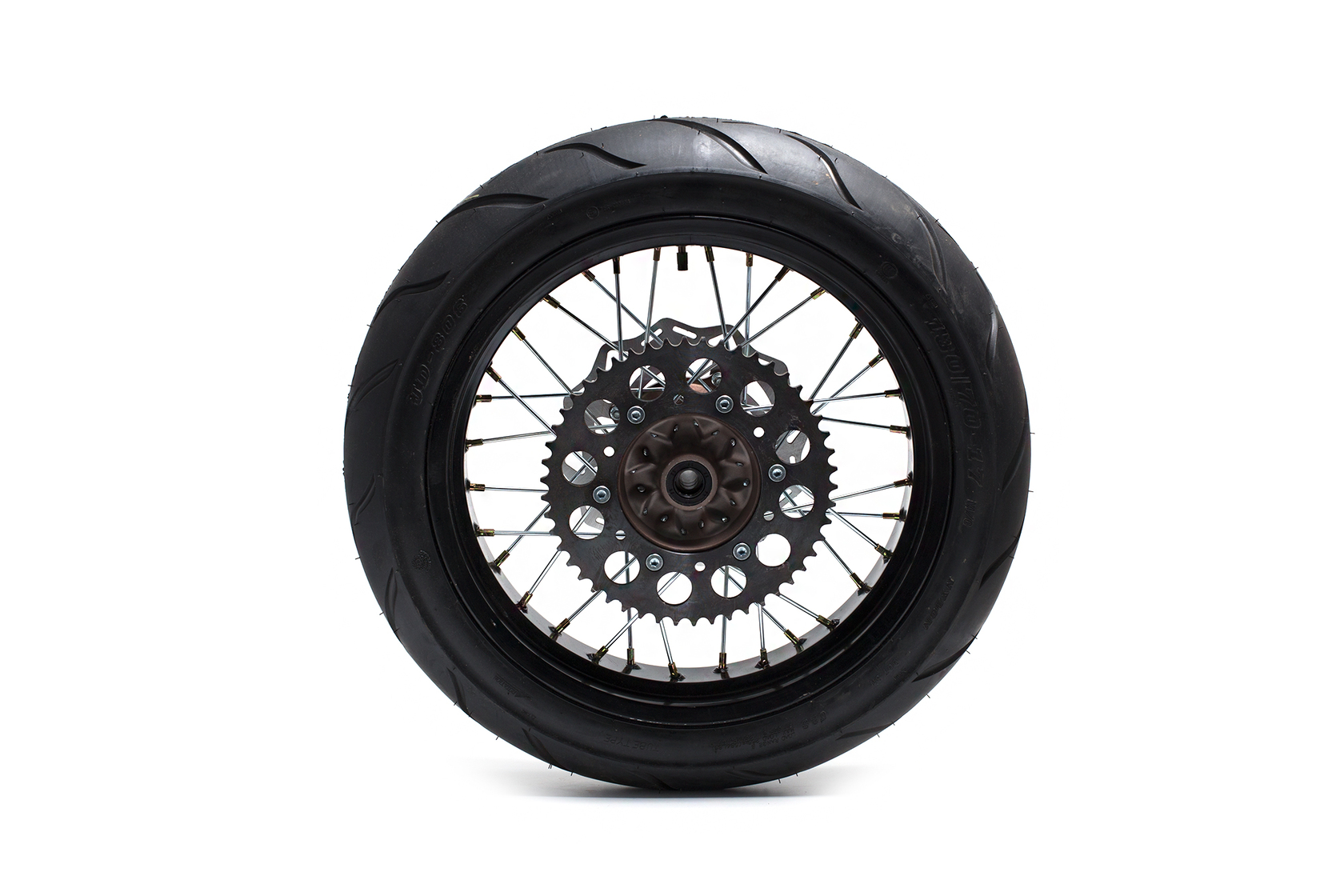 Колеса МОТАРД комп-т (диски алюминий с шиной 110/70-17, 130/70-17, зв. 520х50) (черный/ коричневый)