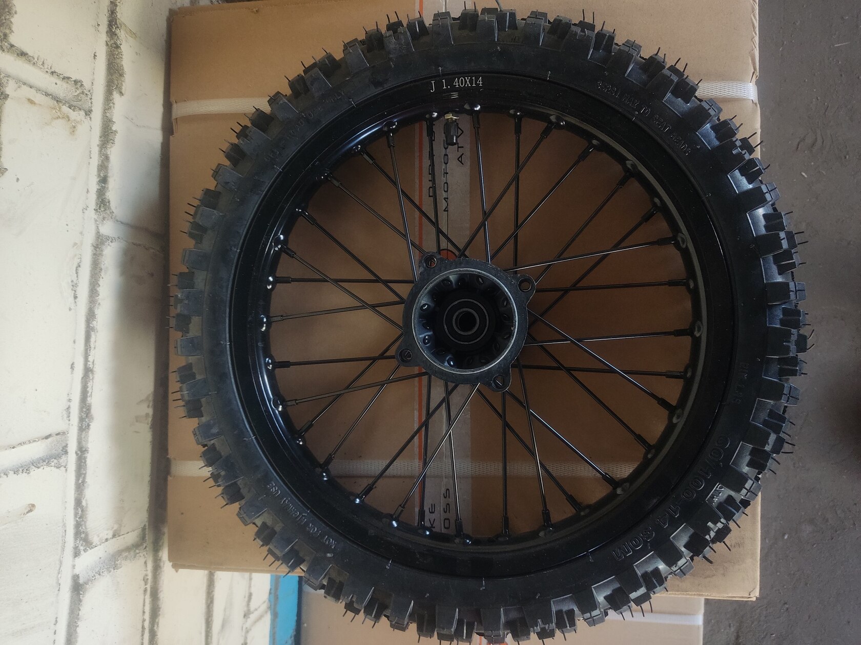Главная ... Колеса в сборе Колесо в сборе для питбайка переднее 14 (алюминиевое) ось 15мм (без тормозного диска)