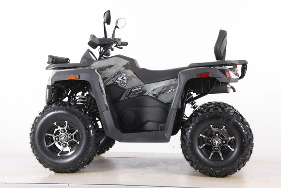 • Мощь и надежность: Сердцем квадроцикла является 200-кубовый 4-тактный двигатель с воздушным охлаждением, выдающий 16.9 л.с. Этой мощности с лихвой хватит для перевозки грузов, буксировки и преодоления любых препятствий.