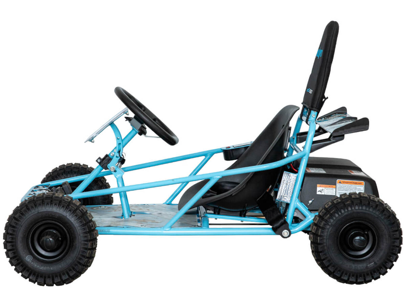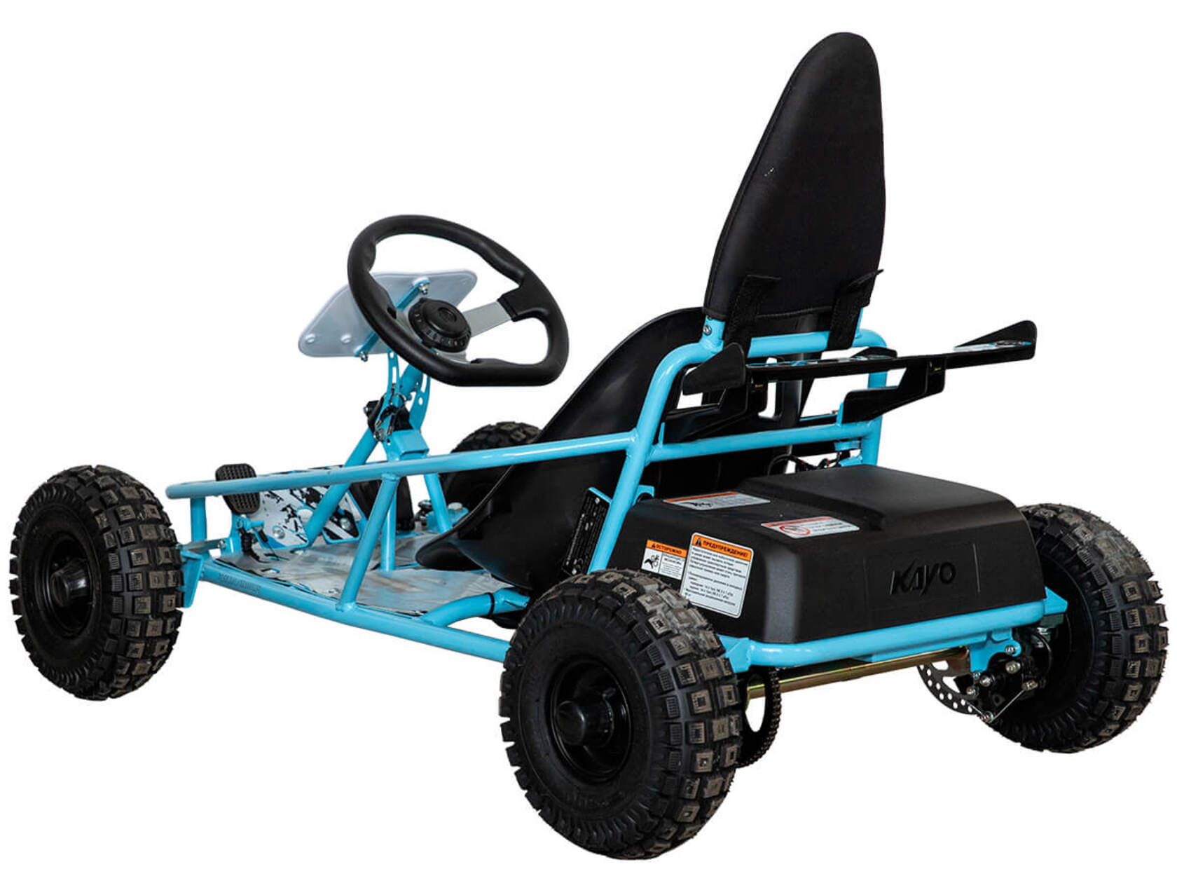 Квадроцикл KAYO еS50 – детская модель с электрическим двигателем для весёлых и безопасных заездов на природе.Оснащён щёточным двигателем постоянного тока мощностью 800 Вт с воздушным охлаждением. Обеспечивает плавную и бесшумную езду без выхлопных газов. Свинцово-кислотный аккумулятор 36V9AH обеспечивает около 70 минут непрерывной работы на одном заряде. Полная зарядка аккумулятора занимает 5-6 часов.Имеет 2 скоростных режима: 12 км/ч и 19 км/ч. Трансмиссия представлена 2-ступенчатой коробкой передач с реверсом.На квадроцикле используются колёса диаметром 3 дюйма. На задних колёсах установлены механические дисковые тормоза.Габариты 1100х700х720 мм. Высота по седлу 175 мм, клиренс 95 мм, колёсная база 850 мм. Сухой вес 43 кг.