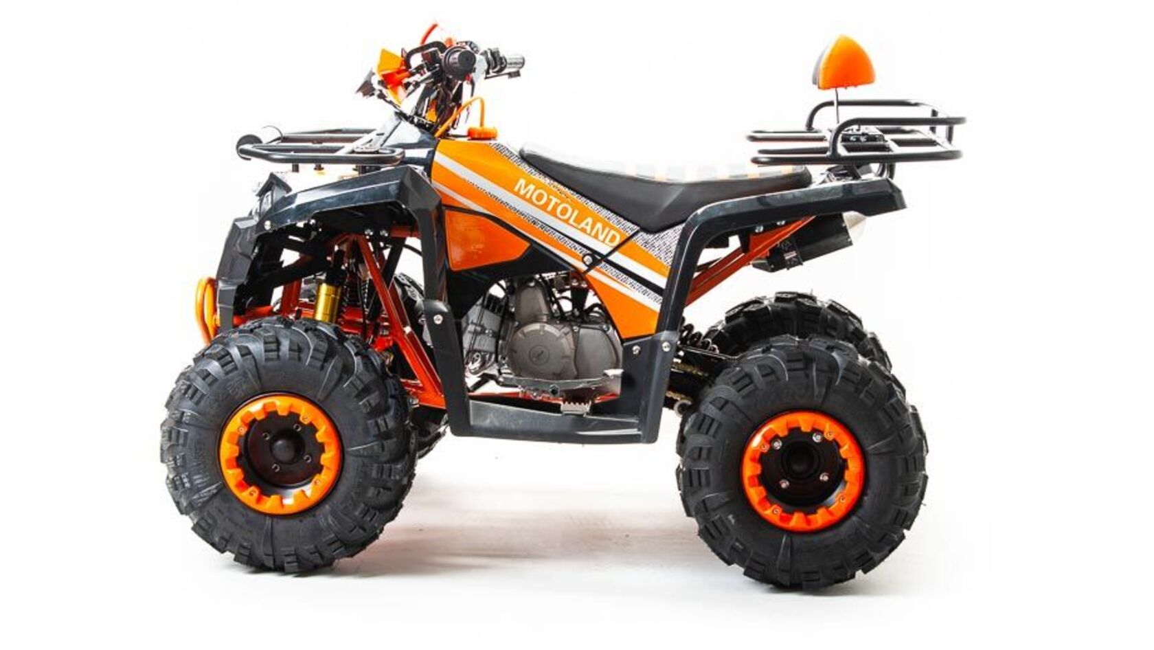 Производитель квадроциклов MotoLand Raptor 125 является новинкой на рынке детских и подростковых квадроциклов 2019 года. Подходит для использования от 5–6 лет и до 11–13, но выдержит и взрослого наездника спортивной комплекции. Комплектуется колесами R8, электростартером, вариатором с задним ходом, карбюратором Keikhin, дисковым передним тормозом, чекой безопасности и защитой рук.