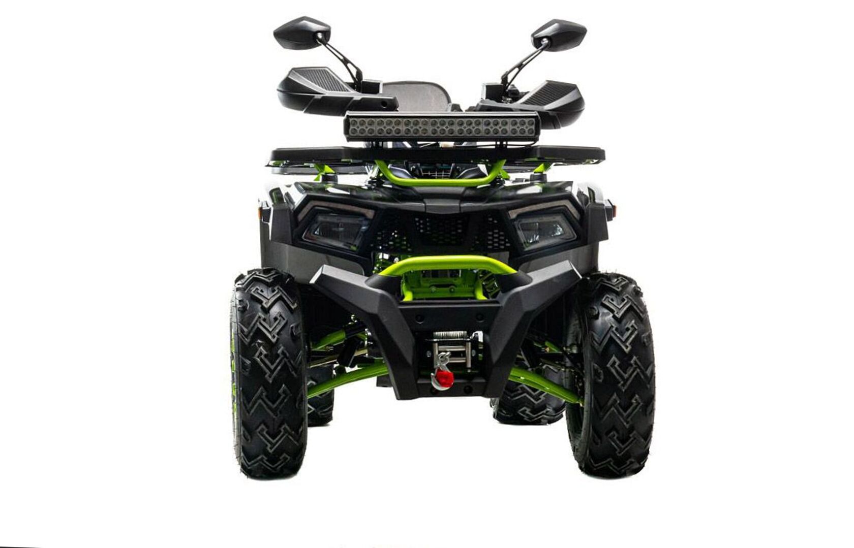 Квадроцикл 200 Wild Track X WINCH сочетает в себе удобство, простоту обслуживания и хорошую проходимость в самых разных условиях использования.Благодаря отлично настроенной подвеске, управление и передвижение на нем становится очень комфортным. Все неровности и кочки будут проглатываться без проблем, ведь на нем установлены колеса на 10 дюймов.Квадроцикл оснащен двигателем 161 QMK на 200 см3 c воздушно-маслянным охлаждением и автоматической коробкой передач с реверсом, дисковыми тормозами, ЖК панелью приборов, светодиодной оптикой с ДХО, ручным и электростартером.Он отлично подойдет для семейных покатушек, а также для рыбалки и охоты. Вы получите незабываемые впечатления от вождения.Отличия от модели 200 Wild Track X:- лебедка