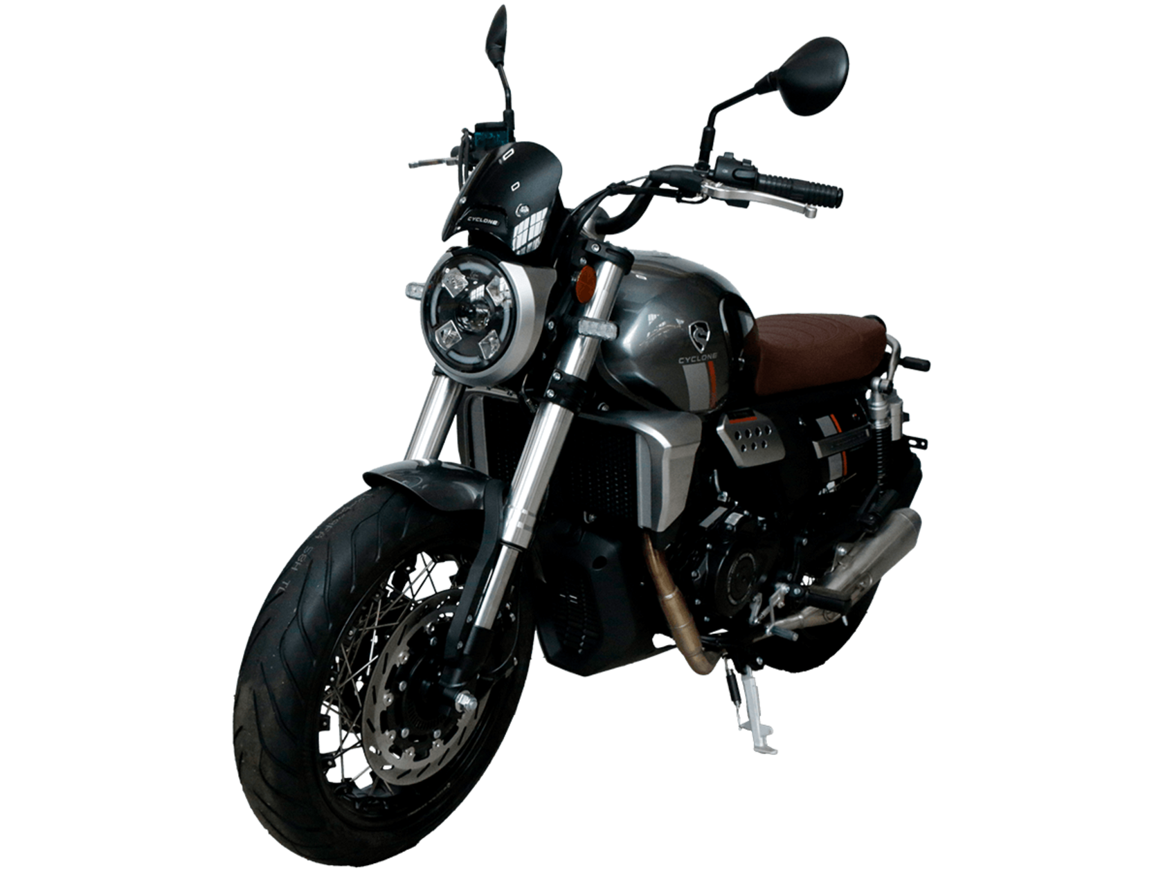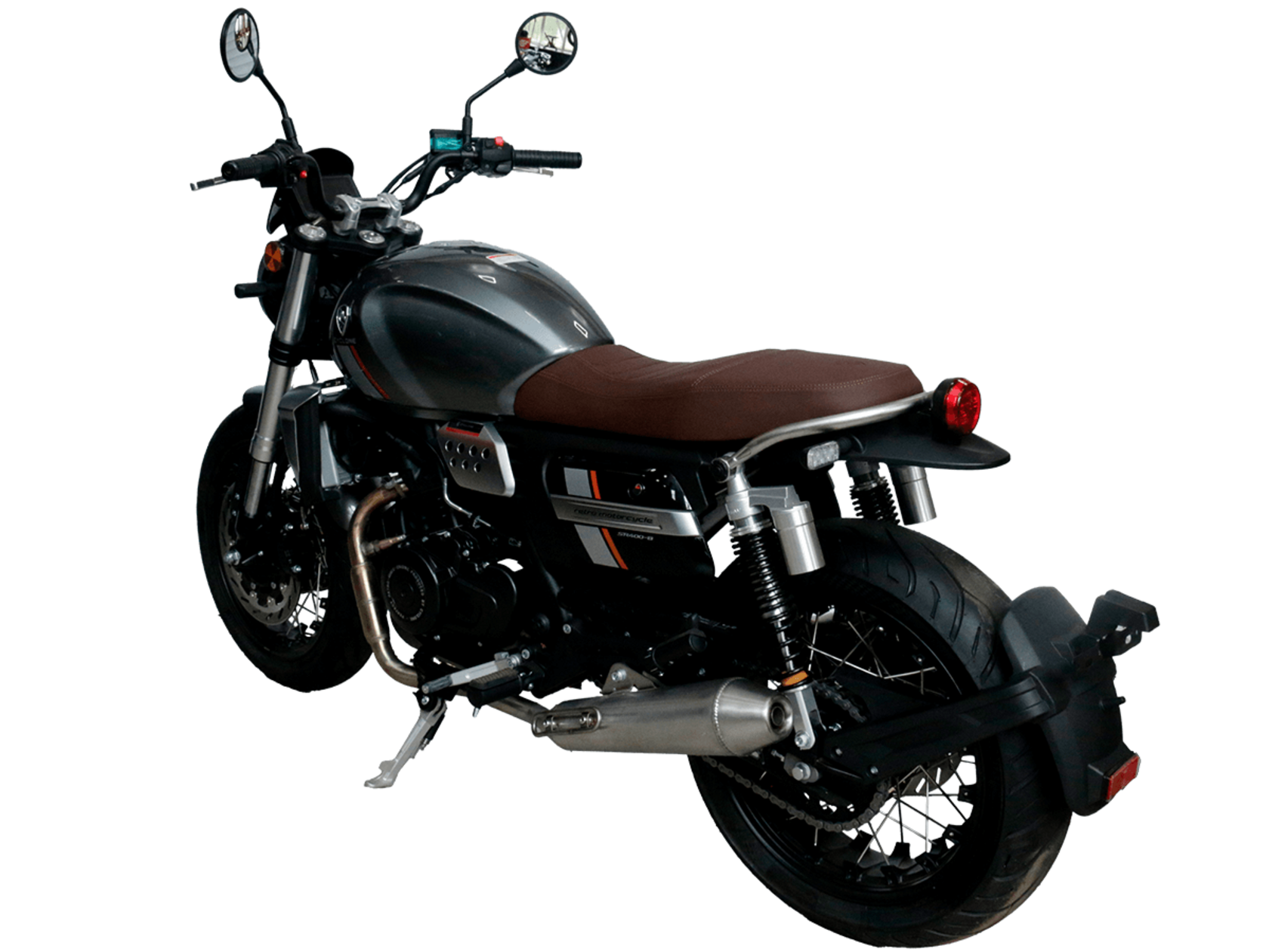 CYCLONE RE401 (SR400-B) 2024 – классик, в котором подчёркнутая простота объединяется с современными технологиями. Данная модель является более продвинутой версией модели RE3 (SR-400) – мотоцикл обладает более современным дизайном, снабжён стильными металлическими накладками на радиатор, а также топливным баком, объём которого увеличен до 20 литров.Двухцилиндровый четырёхтактный двигатель объёмом 401 см3 выдаёт 43 л.с. на 9500 об/мин. Инжекторный впрыск топлива с инжектором BOSCH увеличивает топливную экономичность, а также позволяет добиться высокой приёмистости и неприхотливости агрегата. Жидкостная система охлаждения не допустит перегрева двигателя даже при самом агрессивном вождении. На мотоцикл установлена 6-ступенчатая механическая коробка передач.Максимальная скорость мотоцикла составляет 150 км/ч.RE401 оснащён классическими спицованными колёсами диаметром 17 дюймов. Колёса обуты в бескамерные покрышки TIMSUN. С неровностями дороги эффективно справляются телескопическая вилка перевёрнутого типа спереди и маятник с двумя амортизаторами сзади. Ход передней подвески составляет 130 мм, задней – 81 мм. Оба компонента подвески являются регулируемыми. Эффективное и безопасное замедление с любых скоростей обеспечивают гидравлические дисковые тормоза с ABS спереди и сзади.Клиренс мотоцикла составляет 170 мм. Объём топливного бака – 20 л. Снаряжённая масса – 186 кг.Из дополнительного оборудования можно выделить USB-порт и датчики давления в шинах.Мотоцикл сочетает в себе отличные технические характеристики, комфорт и надёжность, что позволяет вам ощутить настоящую свободу на любой дороге.