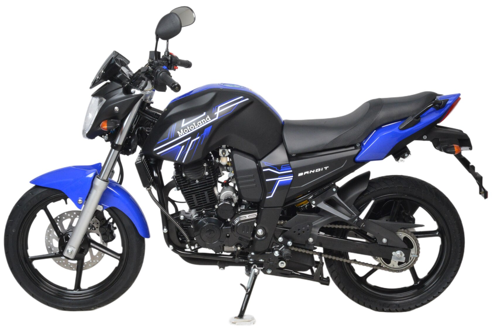 Мотоцикл Motoland BANDIT 300 является классическим представителем семейства дорожным мотоциклов. При этом он обладает всеми чертами мощного сити-байка необходимыми для комфортного передвижения как по городу, так и по шоссе.Стальная рама, объем топливного бака 18 литров. Расход топлива 3 л. на 100кмПодвеска передняя: Телескопическая. Подвеска задняя: моноамортизатор.Колесные диски алюминиевые, размер колес — 17 дюймов. Размер резины (перед / зад): 100/80/17 140/60/17Зеркала, крепление под номер, подножки второго пассажира. Тормоза дисковые. Мягкое сиденье, обшивка из кож-замаФара, электростартер, замок зажигания, АКБ, поворотники, стоп-сигнал, электронная приборная панель.Двигатель 175FMM бензиновый с воздушно-масляным охлаждением, его рабочий объем - 300 кубов, мощность 25 л.с. Коробка передач - механическая, 5-ступенчатая, знакомая всем водителям по автошколе, а потому разобраться не составит труда.