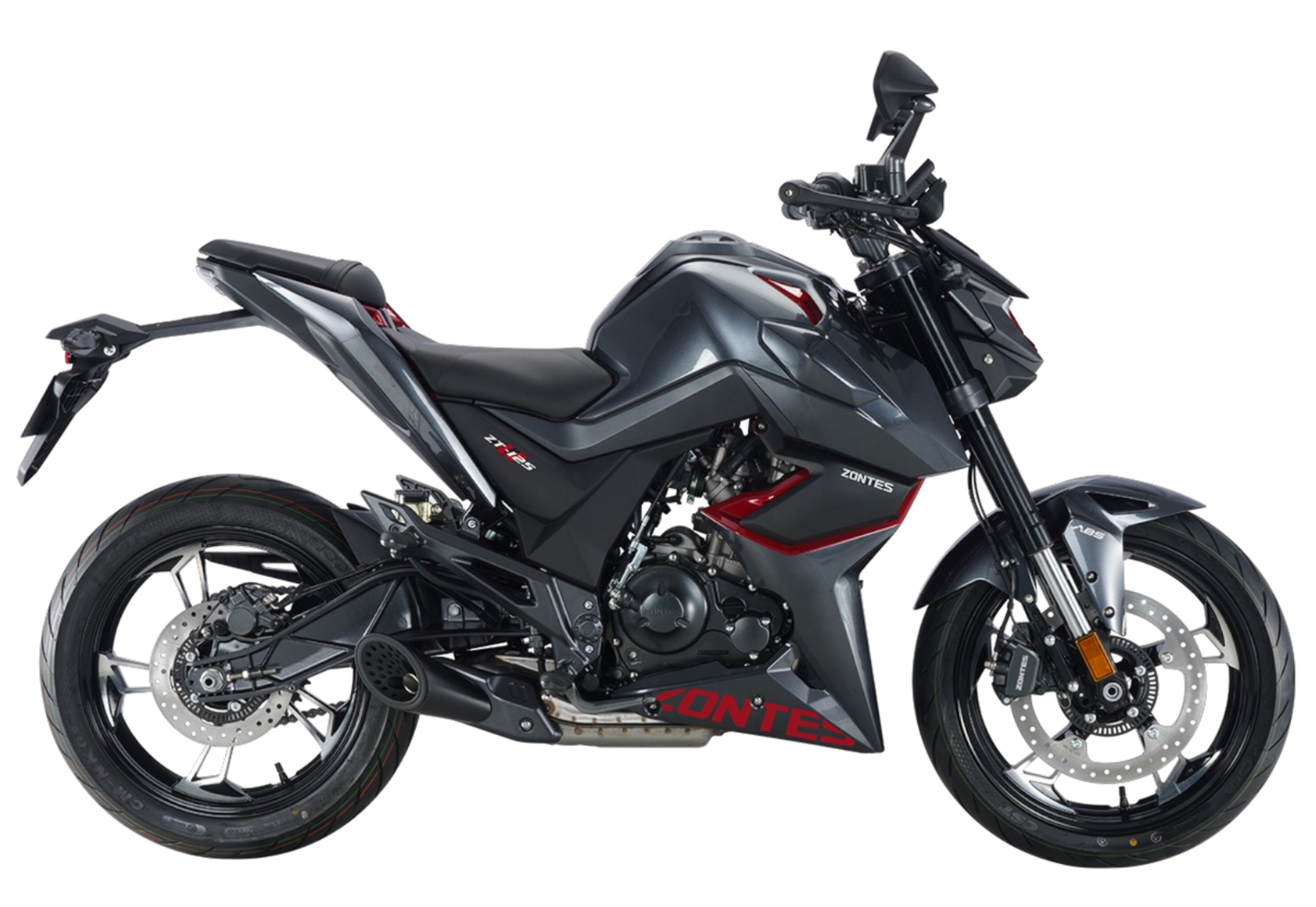 Мотоцикл ZONTES ZT125-U – лёгкий нейкед со стремительным и современным дизайном. Хорошо подходит как для поездок в городской среде и маневрирования в межрядье.Силовая установка представлена одноцилиндровым 4-тактным двигателем ZT152MI с 4 клапанами и 2 верхними распредвалами. Двигатель имеет объём 125 см³ и обеспечивает мощность в 15 л.с. Оснащён инжектором BOSCH и системой жидкостного охлаждения. Механическая коробка передач имеет 6 ступеней и схему 1-N-2-3-4-5-6.Объём топливного бака 12 литров.Колёса выполнены из литого алюминия и имеют диаметр 17 дюймов. Для подвески спереди используется классическая телескопическая вилка, сзади – моноамортизатор. Для торможения установлена дисковая гидравлическая система.В конструкции мотоцикла используется пространственная трубчатая рама из стали. Минималистичная выпускная система также выполнена из нержавеющей стали. Для освещения используется яркая LED-оптика, а приборная панель представлена цифровым дисплеем. Рычаги тормоза и сцепления оснащены защитными скобами.Габариты мотоцикла 2000х845х1105 мм. Колёсная база 1355 мм. Высота по седлу 790 мм. Вес 140 кг..