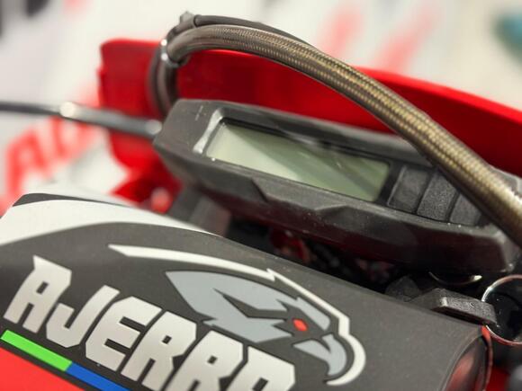 Мотоцикл AJERRA SAGAI A10 YB300H — это современный эндуро-байк, сочетающий в себе надёжность, мощь и управляемость, созданный специально для тех, кто ценит уверенность на трассе и бездорожье. Построенный на прочной раме AJ1 К10 — копии легендарного KTM 2024 года, он демонстрирует высочайший уровень прочности и устойчивости при активных нагрузках. В сердце мотоцикла установлен проверенный временем двигатель Loncin YB300H 176 FMN с воздушным охлаждением. Мотор отличается стабильной тягой, простотой обслуживания и долговечностью, что делает его идеальным выбором как для тренировок, так и для любителей активных покатушек по пересечённой местности. В паре с надёжным карбюратором Nibbi Racing PWK 34 Black он обеспечивает точную подачу топлива и отзывчивость на газ. Подвеска здесь не уступает по качеству — передняя вилка HTW SCC 930 мм с одним картриджем и задний амортизатор HTW 2450 с прогрессией эффективно отрабатывают кочки и препятствия, обеспечивая максимальный комфорт и контроль в движении. Фрезерованные траверсы AJ1 2024 и алюминиевый маятник добавляют лёгкости и прочности конструкции, а система тормозов AJ1 с дисками на обеих осях гарантирует стабильное торможение даже в экстремальных условиях. Детали выполнены с вниманием к каждой мелочи: усиленный руль AL7075, алюминиевые подножки AJ1 2024 (копия S3), надёжная цепь KMC 520 Pro, эргономичные грипсы Lock ON и ручка газа Nibbi. Светодиодная оптика 2 EYE LED Generation 4 (50W) обеспечивает отличную видимость даже ночью. Алюминиевые обода UNISON 7116 и фрезерованные ступицы придают мотоциклу дополнительную прочность, а внедорожные покрышки Cordinal 80/100-21 и 120/90-18 обеспечивают уверенное сцепление с любой поверхностью. Комфорт и надёжность дополнены практичными элементами: счётчик моточасов, защита мотора и рамы, стропы для фиксации, заглушки руля и сиденье AntiSkid. Вся электрика работает от аккумулятора Skyrich Li-Ion, что гарантирует стабильный запуск и работу систем. Высота по седлу — 940 мм, что делает мотоцикл удобным для райдеров среднего и высокого роста. AJERRA SAGAI A10 YB300H — это мощный и сбалансированный эндуро-мотоцикл для тех, кто ищет универсальность и готовность к любым условиям. Он подойдёт как для тренировок и участия в любительских соревнованиях, так и для активного отдыха..