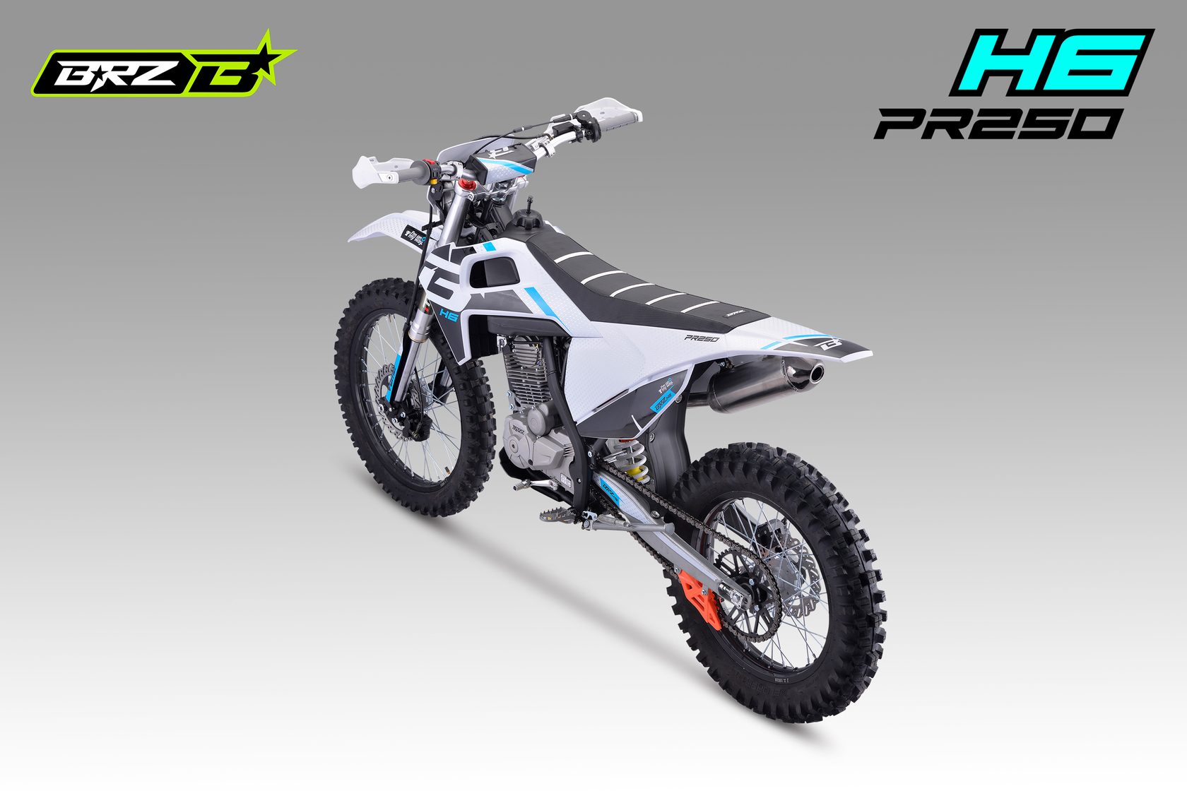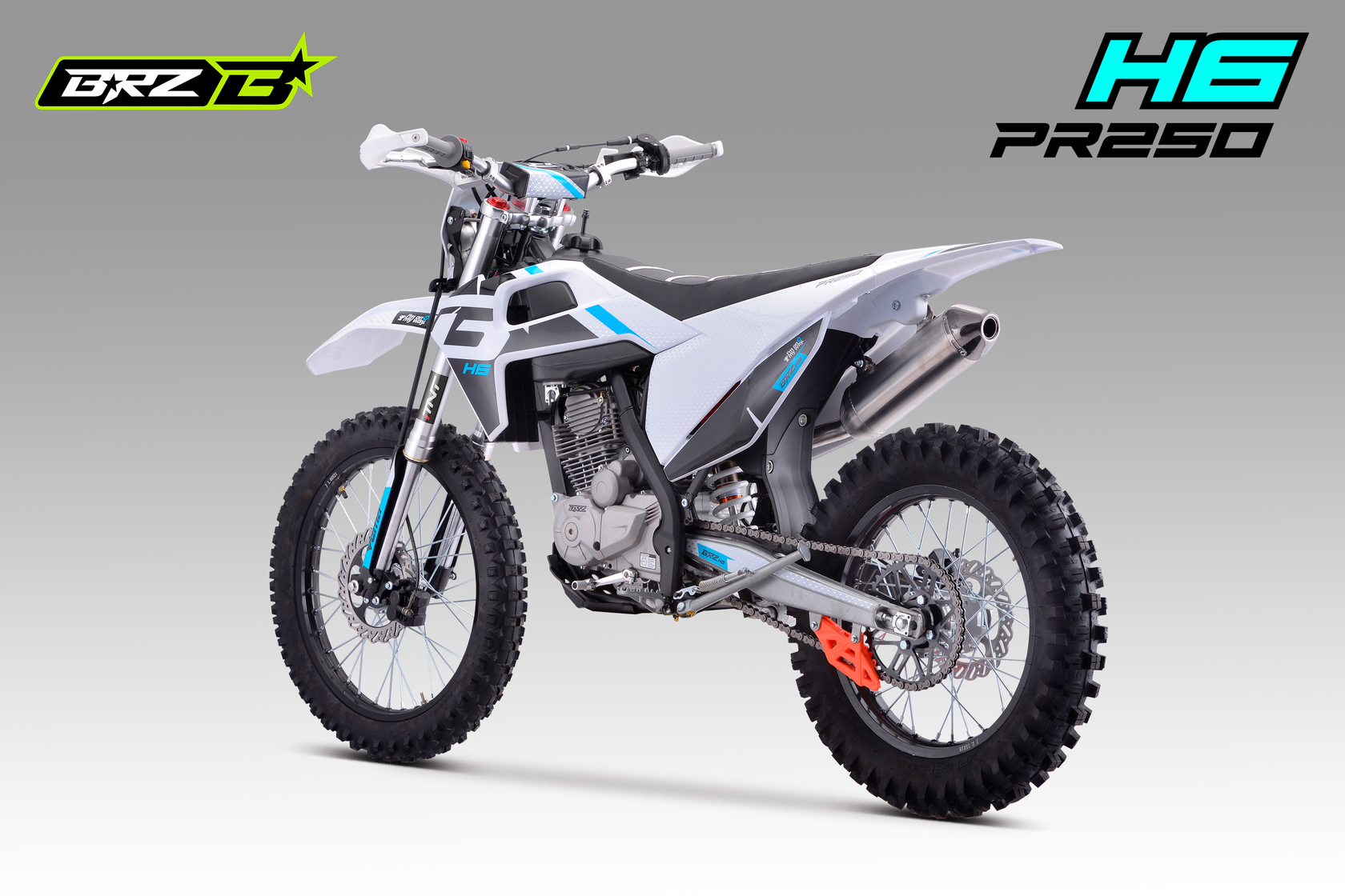 BRZ H6 PR250 21/18 - ваш пропуск в мир приключений. Надежный двигатель ZONGSHEN ZS172FMM-5A с баланс.валом в паре с карбюратором Nibbi Racing PE30 выдает превосходные мощность и тягу. Короткоходная ручка газа обеспечивает мгновенную реакцию. Воздушное охлаждение обеспечивает надежность и простоту эксплуатации, а пластик в стиле Husqvarna подчеркивает его стильный вид. BRZ H6 PR250 21/18 - это ваш верный спутник в мире эндуро. Он обладает всем необходимым, чтобы вы могли покорять бездорожье с уверенностью: Счетчик моточасов для контроля состояния двигателя, защита рычагов. Мягкая резина Gema для уверенного сцепления с любой поверхностью. Небесно-голубой цвет придает мотоциклу легкость и свежесть. С BRZ H6 PR250 21/18 вы ощутите свободу и драйв!