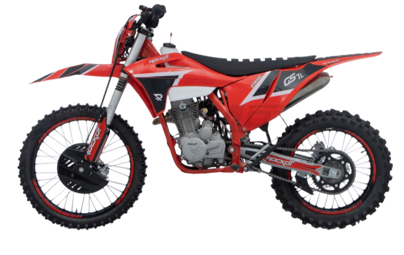 1Мотоцикл ROCKOT GS7L Strive представляет собой воплощение современных технологий и инноваций в мире мотоциклов эндуро. Этот мотоцикл идеально подходит как для профессиональных гонщиков, так и просто любителям езды на природе.Основное внимание при разработке было уделено мощному 1-цилиндровому мотору Loncin 4T 171FMM с объемом 249 куб. см и современной карбюраторной системой топлива PWK34. ROCKOT GS7L Strive обеспечивает надежный запуск как с помощью электростартера, так и с помощью кик-стартера, что добавляет удобства и гибкости в использовании.Мотоцикл оснащен прочной рамой шестигранного сечения, усиленной хромомолибденовым сплавом, а также стальным маятником и литой алюминиевой поперечиной для надежной защиты и долговечности в самых разных условиях. Амортизационная система ROCKOT GS7L Strive включает телескопическую переднюю вилку и регулируемый задний моноамортизатор, благодаря чему байк можно легко настроить под индивидуальные предпочтения и особенности трассы.Система тормозов оснащена дисковыми гидравлическими тормозами спереди и сзади, благодаря чему достигается уверенное и эффективное торможение на любой скорости. Колеса ROCKOT GS7L Strive с усиленными алюминиевыми ободами и специальными шинами GUMMY обеспечивают отличное сцепление с любой поверхностью.Дизайн мотоцикла воплощает современные тенденции: светодиодные фары, алюминиевый руль переменного сечения и панель приборов со счетчиком моточасов для удобства контроля..