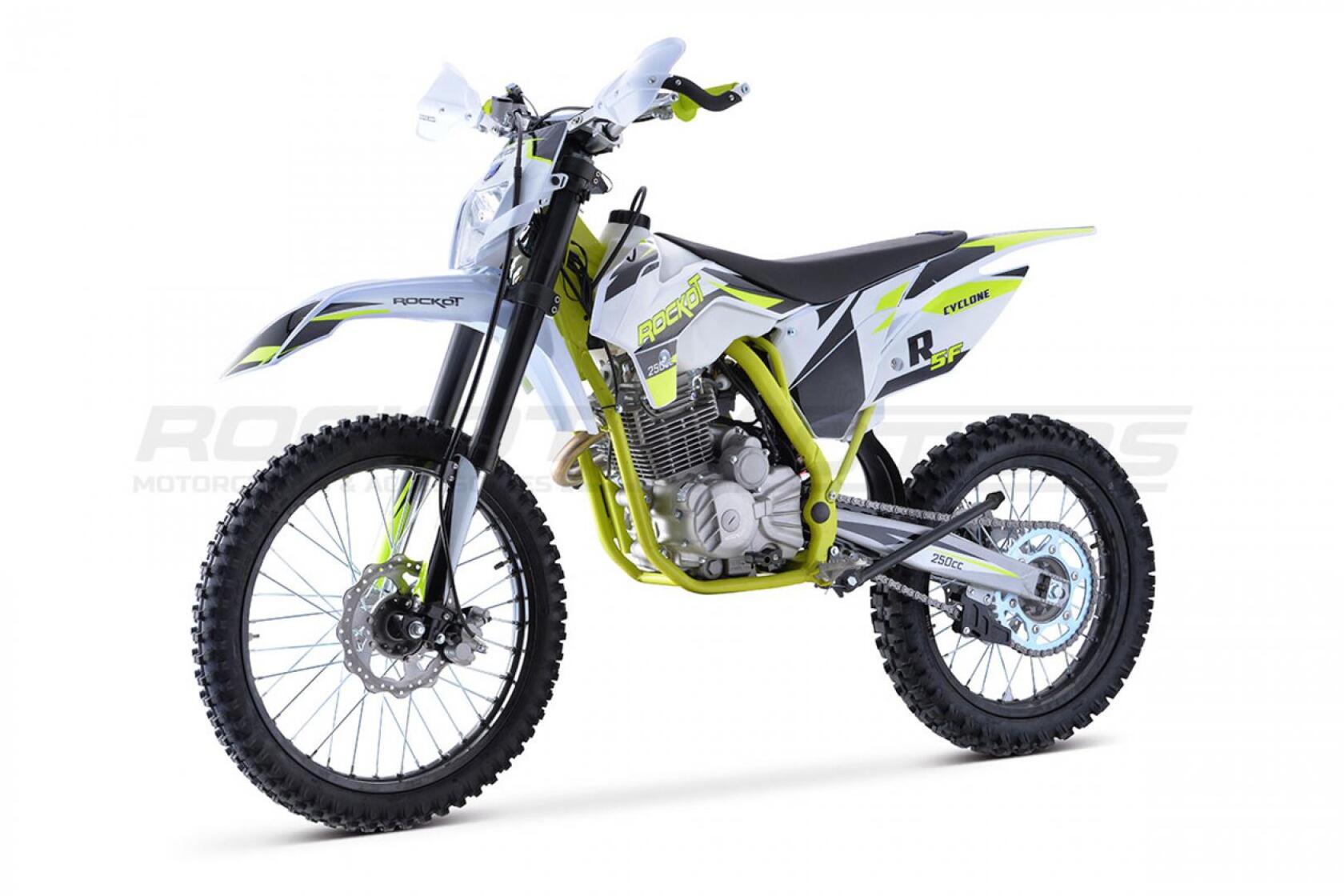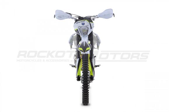 Новинка 2021 года, . Обладают энергоемкой подвеской, передняя вилка имеет возможность регулировки, по скорости сжатия и отбоя. Задний амортизатор с прогрессией, а также с возможностью регулировки. Данный мотоцикл подойдет как новичкам, так и тем кто захотел пересесть с питбайка на более кубатурную технику. Двигатель воздушного охлаждения в паре с карбюратором NIBBI PE 30 выдает 21 л. с., которые позволяют с легкостью брать любые подъемы, преодолевать броды, а так же перескакивать препятствия. На мотоцикле ROCKOT Вы сможете познать и почувствовать прекрасный мир эндуро.