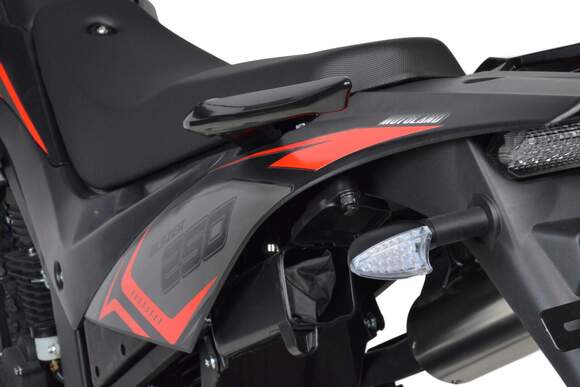 Motoland BLAZER 250 - отличный эндуро-мотоцикл по доступной цене. Двигатель 169FMM, мощностью 16 л.с., усиленную «перевернутую» переднюю вилку, защиту двигателя и рук, LCD-панель, светодиодные поворотники и стоп-сигнал и кроссовую фару.Переднее колесо 2.75-21, заднее колесо 4.0-18.мотоцикл двойного назначения – для асфальта и легкого бездорожья.Наличие ПТС дает возможность легально передвигаться по городским улицам и дорогам общего пользования, внедорожные качества позволяет без особых усилий преодолевать бездорожье. Как видите, за довольно символическую цену вы получаете полноценный эндуро мотоцикл. После небольшой доработки мотоцикла, его свободно можно использовать для эндуро рейдов.Blazer 250 отлично подойдет как опытным любителям эндуро, так и начинающим.Мотоцикл маневренный и потрясающе удобный в городе, из за своей узкой и высокой формы, способный пролезть даже в минимальные зазоры между стоящими в пробке автомобилями. , внедорожные качества позволяет без усилий преодолевать грязь и трудопроходивые места .Мягкое сидение для 2-х пассажиров и подножки пассажира для удобных совместных поездок.Тихий городской глушитель, который не доставит вам дискомфорта.Скромный расход топлива, который почти не зависит от того, с какой скоростью едет мотоцикл и на каких оборотах работает двигатель, в среднем это 3,2-3,5 л на 100 км.Мотоцикл прост в управлении и неприхотлив в обслуживании. Подходит мотолюбителям Эндуро любого возраста и опыта вождения, которым нужна техника для поездок из точки А в точку Б и обратно по дорогам и легкому бездорожью.
