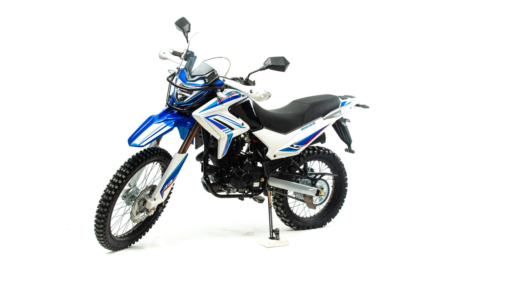 Обновленный мотоцикл Motoland XR250 ENDURO (172FMM-PR) предназначен для езды по бездорожью, эндуро соревнований, подходит для города, шоссейных и сельских дорог.. Motoland XR250 ENDURO (172FMM) отличаются высокой проходимостью, отлично ведут себя на мягком грунте и песке, легко преодолевают препятствия. Спортивный характер XR250 ENDURO (172FMM) подчёркивается современным дизайном. Классическая конструкция акцентирует внимание на сильных сторонах мотоцикла, которому не страшны грязь, брёвна, камни и другие преграды. Мотолэнд XR250 ENDURO (172FMM) весит 130 кг и подходит для пользователей любого роста, хорошо держит баланс и позволяет уверенно сохранять равновесие даже на сложных участках эндуро трасс. Колёса спицованные, сделаны из алюминия. Размер переднего колеса — 21 дюйм (530 мм), заднего — 18 дюймов (450 мм). Передние и задние тормоза дисковые. Покрышки с крупными шипами подходят для бездорожья, лесных дорог, песка и мягкого грунта. При этом купить мотоцикл Эндуро можно не только для соревнований, но и для езды по трассе и городу. Передняя вилка — перевёрнутая телескопического типа, дополнительно защищена жёстким пластиком. Задняя подвеска с моноамортизатором. Руль Эндуро усилен пластиковыми рамками, которые защищают руки гонщика от веток и травм при падениях. Приборная панель оснащена ЖК-экраном, на котором отображается вся информация о состоянии Эндуро: обороты, пробег, скорость и другие необходимые данные. Китайский Эндуро компании MotoLand оснащён одноцилиндровым 4-тактным двигателем 172 FMM с воздушным охлаждением и балансирным валом. Мотор мощностью 21 л. с. и объёмом 250 см³ даёт возможность разгоняться на Эндуро по ровной трассе до 120 км/ч. Расход топлива — 5 литров на 100 км. Коробка передач механическая, 5-скоростная. Для запуска мотора используйте электростартёр или кикстартёр. Установлена электронная система зажигания (CDI). У нас Вы можете купить этот мотоцикл с бесплатной доставкой по РФ и гарантией до года. Также его можно приобрести в рассрочку или в кредит.