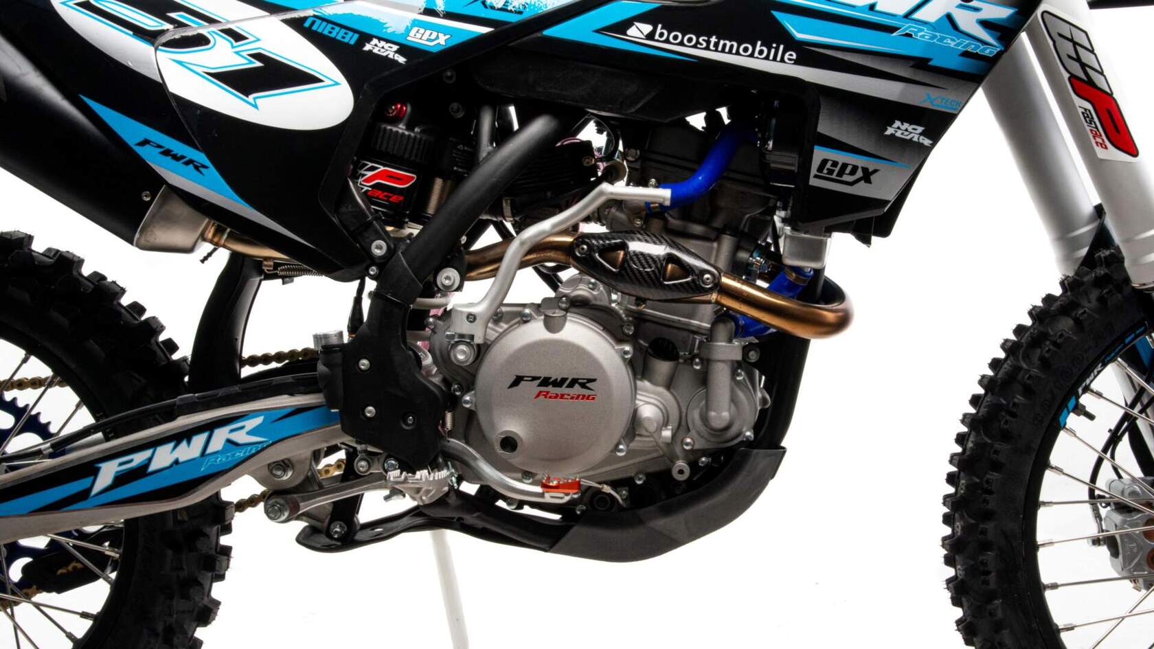 PWR FS300 NC - флагманская модель с кубатурой 300 куб.см. позволяет любому стать участником мотокросса и получить массу впечатлений.300 кубовый двигатель мощностью 34 л.с. с двумя радиаторами водяного охлаждения и вентилятором, для усиленного потока охлаждения, а так же с 4 клапанами ZS 182 MN и производительным карбюратором NIBBI N34 дают мотоциклу отличный разгон и скорость на прямых.Полностью настраиваемая подвеска FASTACE, которая обладает большим ходом и плавной работой для преодоления всех неровностей кроссовой трассы при сохранении ваших сил.Прочный облегченный маятник из алюминиевого сплава с большим сопротивление к нагрузкам на скручивание.Двойной алюминиевый руль переменного сечения 22/28 с низким подъёмом и с подушкой IGP.Это полноценный кроссовый мотоцикл, который является одним из лучших в кроссовой линейке мотоциклов от компании PWR, преимущества которого могут оценить как профессиональные гонщики, так и все ценители гонок по бездорожью. Уникальная комбинация легкого веса, впечатляющей мощи и исключительной управляемости. Модель обладает бойцовским характером, отличными эксплуатационными и динамическими характеристиками.