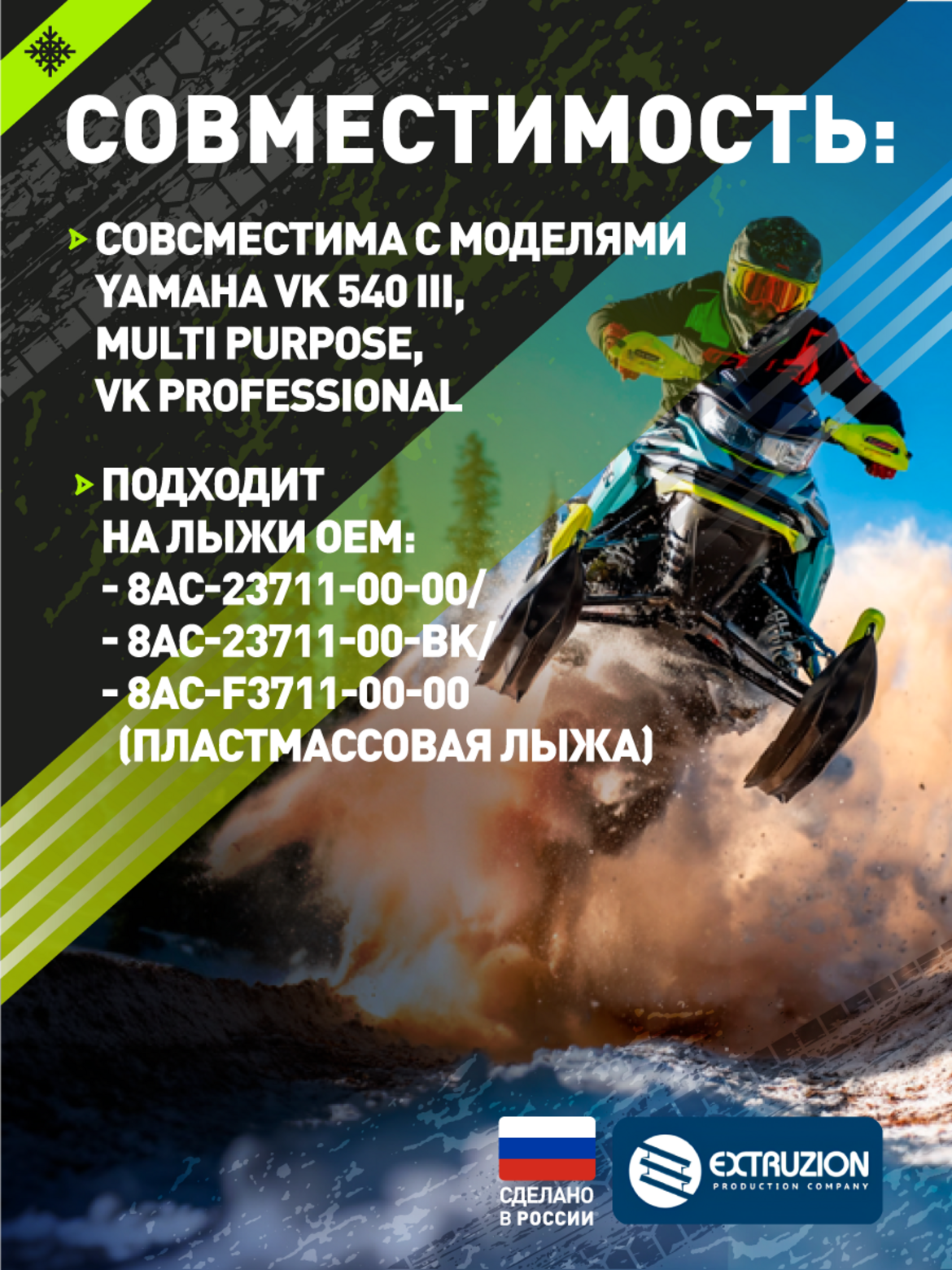 Специализированная накладка на лыжи для снегохода Yamaha VK540 с уникальным профилем углубленного конька. Разработана для повышения курсовой устойчивости и улучшения управляемости. Обеспечивает надежную защиту стандартных лыж от износа и повреждений при эксплуатации в сложных зимних условиях.