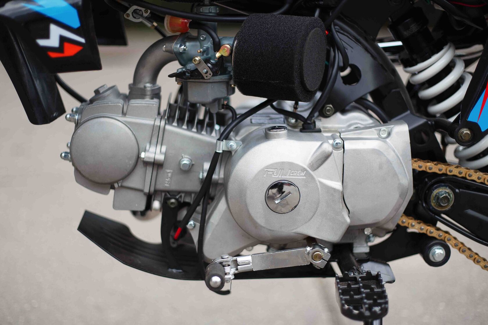 Представляем Вашему вниманию питбайк от молодого российского бренда Full Crew. Модель получила название FC125e 17/14. В ней собраны все ключевые моменты для покорения сердца питбайкера. Крепкая стальная рама, дисковые гидравлические тормоза, надежный и проверенный временем двигатель YX 125 с механической четырехступенчатой коробкой передач и фара. А самый огромный плюс – это демократичная цена и наличие электростартера на питбайке Full Crew FC125 17/14.