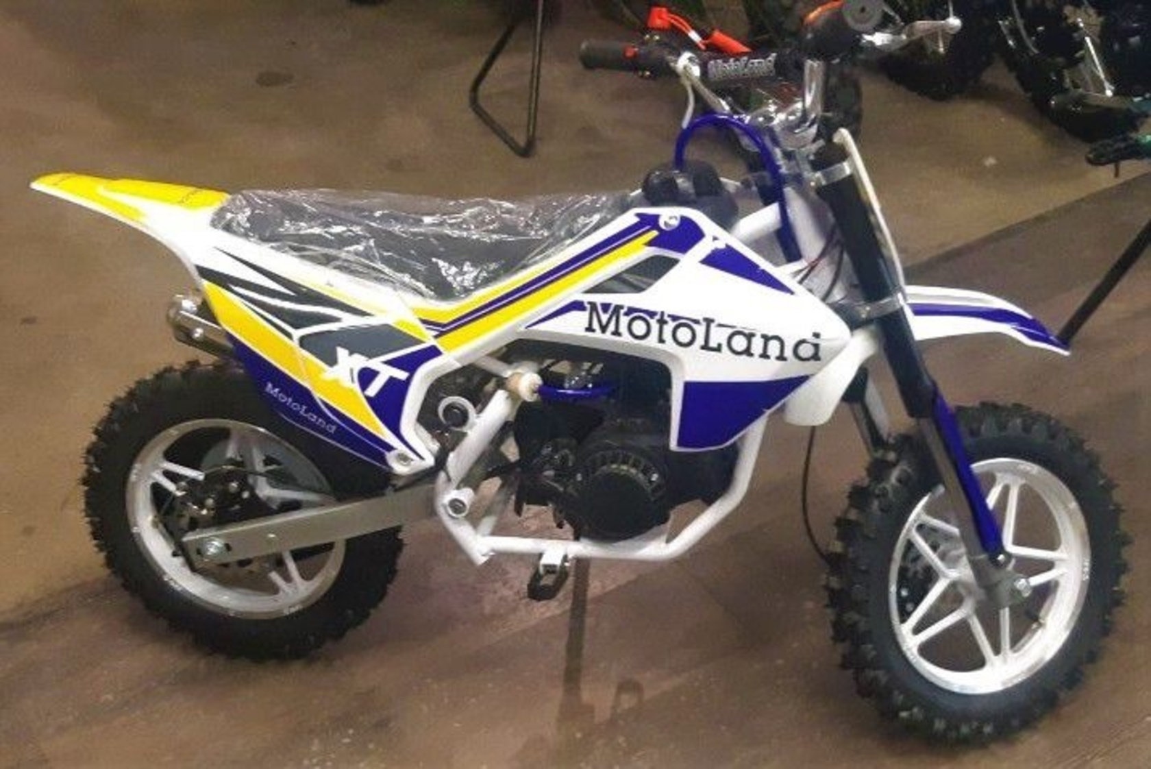 Питбайк MOTOLAND XT50 - новинка в линейке питбайков Motoland 2019 года! Благодаря своим небольшим размерам и весу отлично подойдет для начинающих райдеров.Двухтактный двигатель объемом 50 куб.см. мощностью 2,5 л.с. легко справится с весом ребенка и в тоже время не позволит развить опасную скорость.Техника Motoland за последний год зарекомендовала себя как качественная и доступная, мы уверены что и этот мотоцикл будет радовать своего будущего хозяина.У нас Вы можете купить этот питбайк с бесплатной доставкой по РФ и гарантией до года. Также его можно приобрести в рассрочку или в кредит.