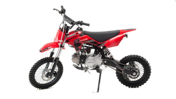 Недорогой надёжный питбайк GS Motors S7 идеален для поездок по грунтовым дорогам и бездорожью для детей которые уже научились ездить на маленьких мотоциклах объемом 50 куб.см. Хорошо чувствует себя на мягком и среднем грунте, разгоняется до 50 км/ч.Питбайк прост в управлении и не требует специального ухода, подойдёт детям до 7 лет.Передняя подвеска — телескопическая нерегулируемая вилка. Задняя подвеска маятниковая с моноамортизатором. Руль 22 мм с высоким подъёмом и перекладиной удобен для мотоциклистов разного роста.Питбайк весит всего 50 кг, при этом выдерживает вес до 60 кг. Колёса спицованные. Размер заднего и переднего колеса — 10 дюймов. Тормоза дисковые, передний тормозной суппорт двухпоршневой, задний — однопоршневой.Питбайк оснащён карбюратором с фильтром нулевого сопротивления и одноцилиндровым четырёхтактным двигателем с воздушным охлаждением. Надёжный мотор мощностью 5 л. с. и объемом 70 см³. Трансмиссия - четырехступенчатая. Система зажигания электронная (CDI), запуска двигателя - кикстартер.Питбайк относится к недорогим моделям, которые при должной эксплуатации работают без сбоев, неприхотлив в обслуживании, не занимает много места в гараже.