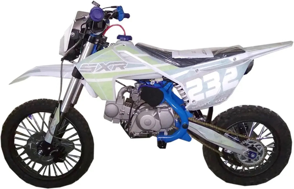 RACER SXR125 Pitbike - отличный питбайк не только для подростков и начинающих райдеров, но и для опытных спортсменов. Оснащен четырехтактным бензиновым двигателем с воздушным охлаждением. Колесные ступицы усилены, в производстве использованы тайваньские подшипники. Надежное сцепление с дорогой обеспечивается сбалансированной подвеской и внедорожной резиной Nylon (Тайвань). Безопасность гарантируют двухпоршневые дисковые тормоза. Комфорт водителя обеспечит задний гидравлический моноамортизатор с регулировкой жесткости. На питбайке установлена фара головного света - можно ездить в темное время суток. У мотоцикла нет ПТС, поэтому он не предназначен для езды по дорогам общественного пользования.