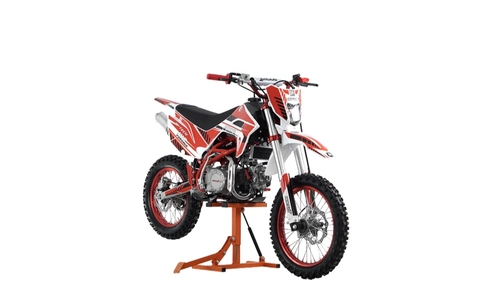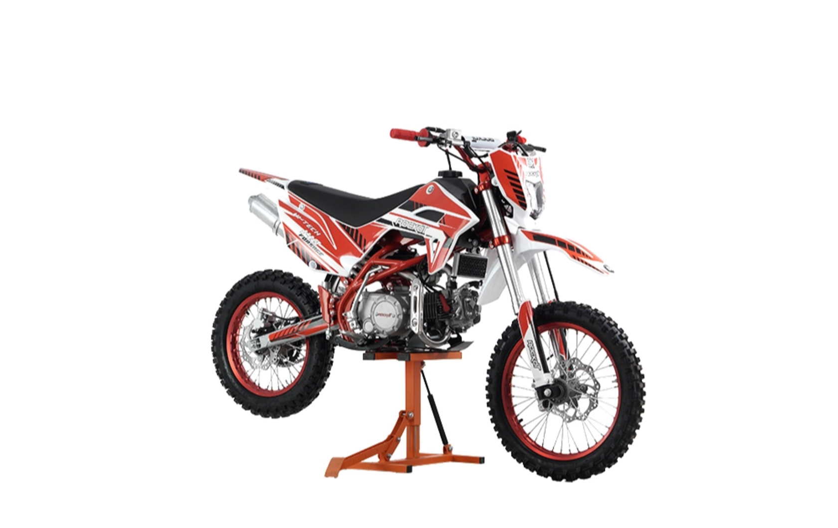 ROCKOT HI-TECH 140 Forsage 2.0 - питбайк со спортивным нравом. Двигатель объемом 140 кубических сантиметров, превосходно проявляет себя как в повседневной езде по лесу, так и в спортивных состязаниях по мини мотокроссу. С управлением питбайком ROCKOT HI-TECH 140 Forsage справятся и взрослые и дети, ведь его вес всего 75 килограмм. Высота по седлу у данной модели - 850 мм, что будет комфортна для райдеров ростом от 150 см.Рулевое управлениеВ алюминиевых траверсах закреплен высокий руль, на котором установлены короткоходная ручка газа, откидные, фрезерованные рычаги сцепления и тормоза, счетчик моточасов и кнопки: старт, стоп. Тормозная системаПитбайк оснащен полностью гидравлической тормозной системой. Спереди установлен двухпоршневой тормозной суппорт, сзади - однопоршневой. Гидравлическая машинка заднего тормоза оборудована металлической защитой, которая обеспечит ее сохранность при боковых ударах. Тормозные диски увеличенного диаметра: передний тормозной диск - 220 мм, задний - 190 мм. Перфорация тормозных дисков обеспечивает их постоянное охлаждение во время езды. Данная тормозная система способна быстро останавливать питбайк в любых условиях, даже с высокой скорости..