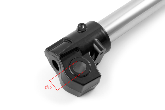 • Передняя вилка для питбайка с длинными перьями 725 мм. Предназначена для установки на питбайки с жёсткой эксплуатацией, обеспечивает отличную управляемость и комфорт при езде по бездорожью. Посадочные размеры соответствуют большинству современных моделей, вилка рассчитана на установку двухпоршневого суппорта и передней оси диаметром 15 мм.