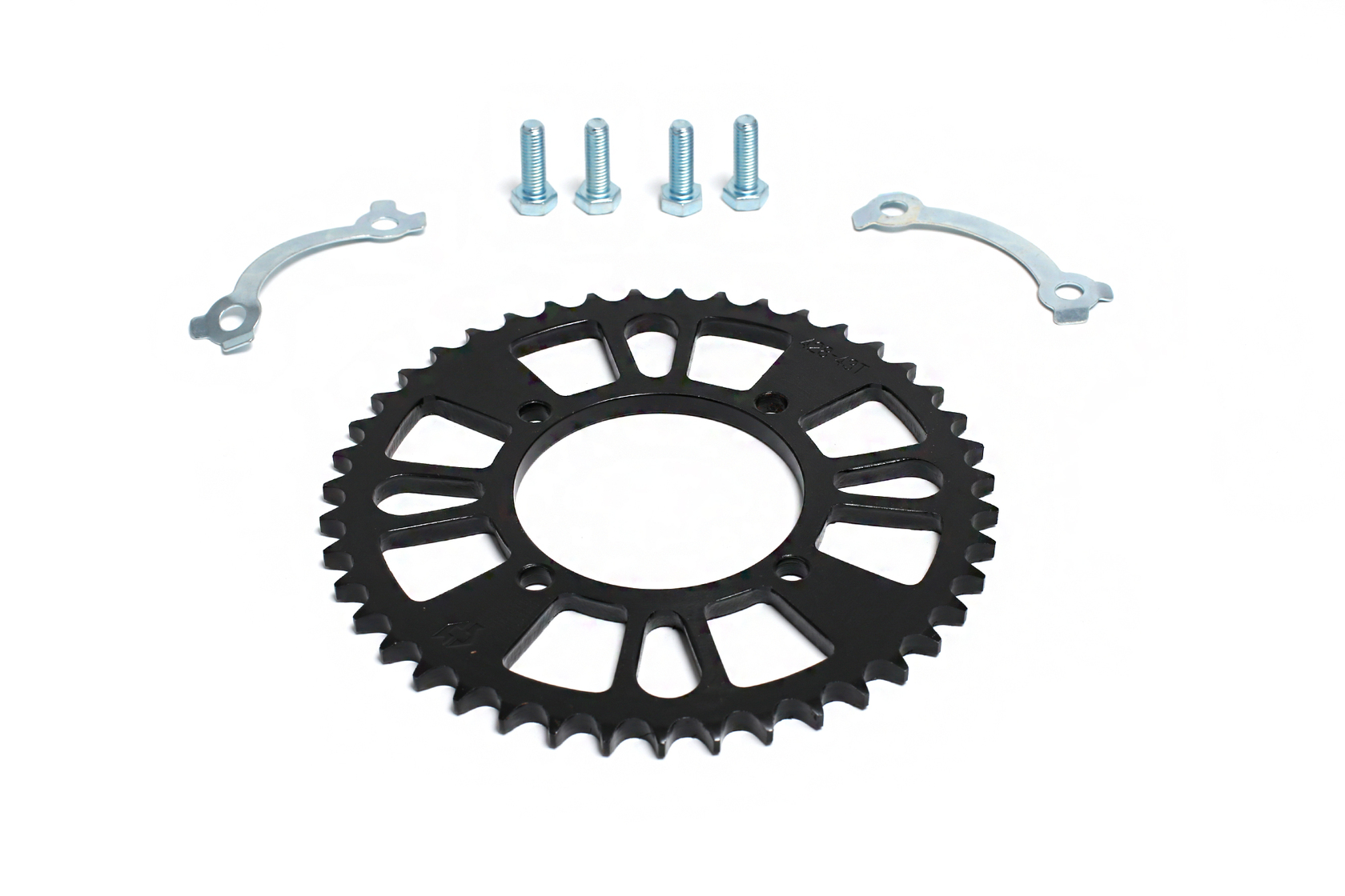 • Задняя ведомая звезда для питбайков с 39 зубьями, предназначенная для цепи типа 420. Изготовлена из прочной стали с закаленными зубьями для повышенной износостойкости. Центральное отверстие 76 мм, крепление по схеме 4×92 мм. Совместима с питбайками 125-190 см³.