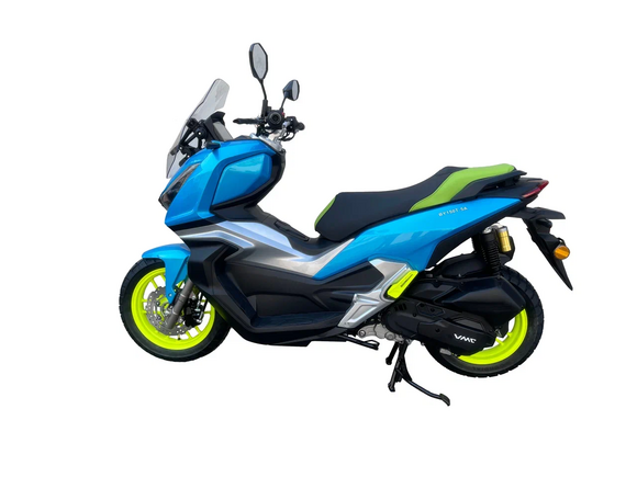 Встречайте VMC VENTO MAX RS 150 EFI — скутер, который превратит вашу городскую жизнь в яркое путешествие. Этот спортивный аппарат создан для тех, кто ценит скорость и комфорт, и кто не готов мириться с обыденностью.Аэродинамичный корпус MAX делает его не только визуально привлекательным, но и невероятно маневренным среди городских заторов, превращая каждую поездку в настоящее удовольствие.Скутер выделяется стреловидными контурами, которые подчеркивают его спортивный характер. А удобное седло с просторным отсеком для багажа гарантирует, что ваши вещи всегда будут под рукой.LED-светотехника и электронное табло приборов не только улучшают видимость и информативность, но и добавляют современности в образ скутера.Сигнализация обеспечивает дополнительную безопасность, а 4-х тактный, одноцилиндровый двигатель гарантирует надежность и долговечность.Литые колеса размером 130/70-13 обеспечивают отличное сцепление с дорогой, а вариаторная коробка передач и дисковые тормоза обещают легкость управления и безопасность при торможении.С максимальной нагрузкой до 180 кг, VMC VENTO MAX RS 150 EFI готов стать вашим надежным спутником в любых приключениях, предлагая вам свободу передвижения и возможность выразить свой стиль.