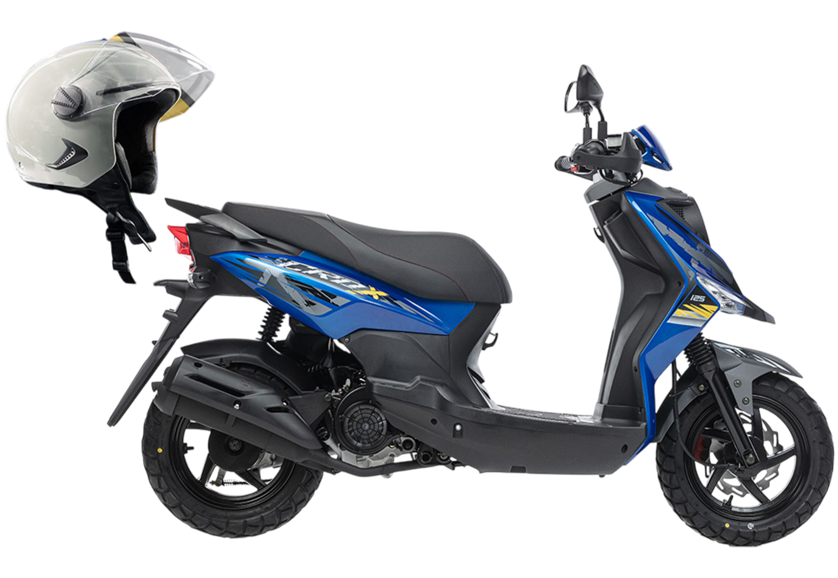 Скутер SYM CROX 125 Ярко Синий/ Матовый Темно-Серый + мотошлем SYM серый