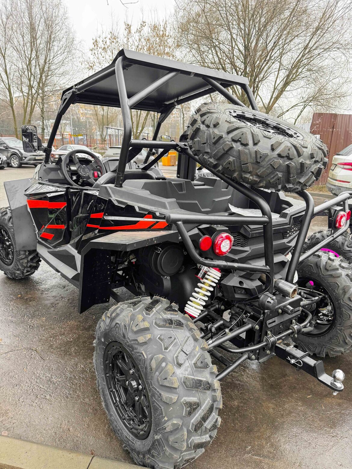 Двухместный баггиГотовы покорять бездорожье с комфортом? Наш двухместный багги – это идеальный спутник для охоты, рыбалки, экспедиций и экстремальных приключений. С мощным V-образным двигателем (799 см³, 59 л.с.) и жидкостным охлаждением он легко справляется с грязью, песком и снегом, работая на доступном АИ-92.Превосходная проходимость обеспечивается вариаторной трансмиссией с возможностью переключения между 2WD и 4WD, а также передним дифференциалом для лучшего сцепления. Независимая подвеска с двойными А-образными рычагами и ходом 110 мм (спереди) / 95 мм (сзади) гарантирует плавность хода даже на сложном рельефе. Опционально доступны азотные амортизаторы для еще большей выносливости.26-дюймовые шины (26x8 R14) с легкосплавными дисками и гидравлическими тормозами обеспечивают уверенное движение и мгновенную остановку. Клиренс 29 см позволяет преодолевать серьезные препятствия, а электрическая лебедка на 1600 кг выручит в самых сложных ситуациях.Комфорт и управляемость:Электроусилитель руля (EPS) – легкое и точное управление.