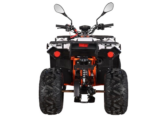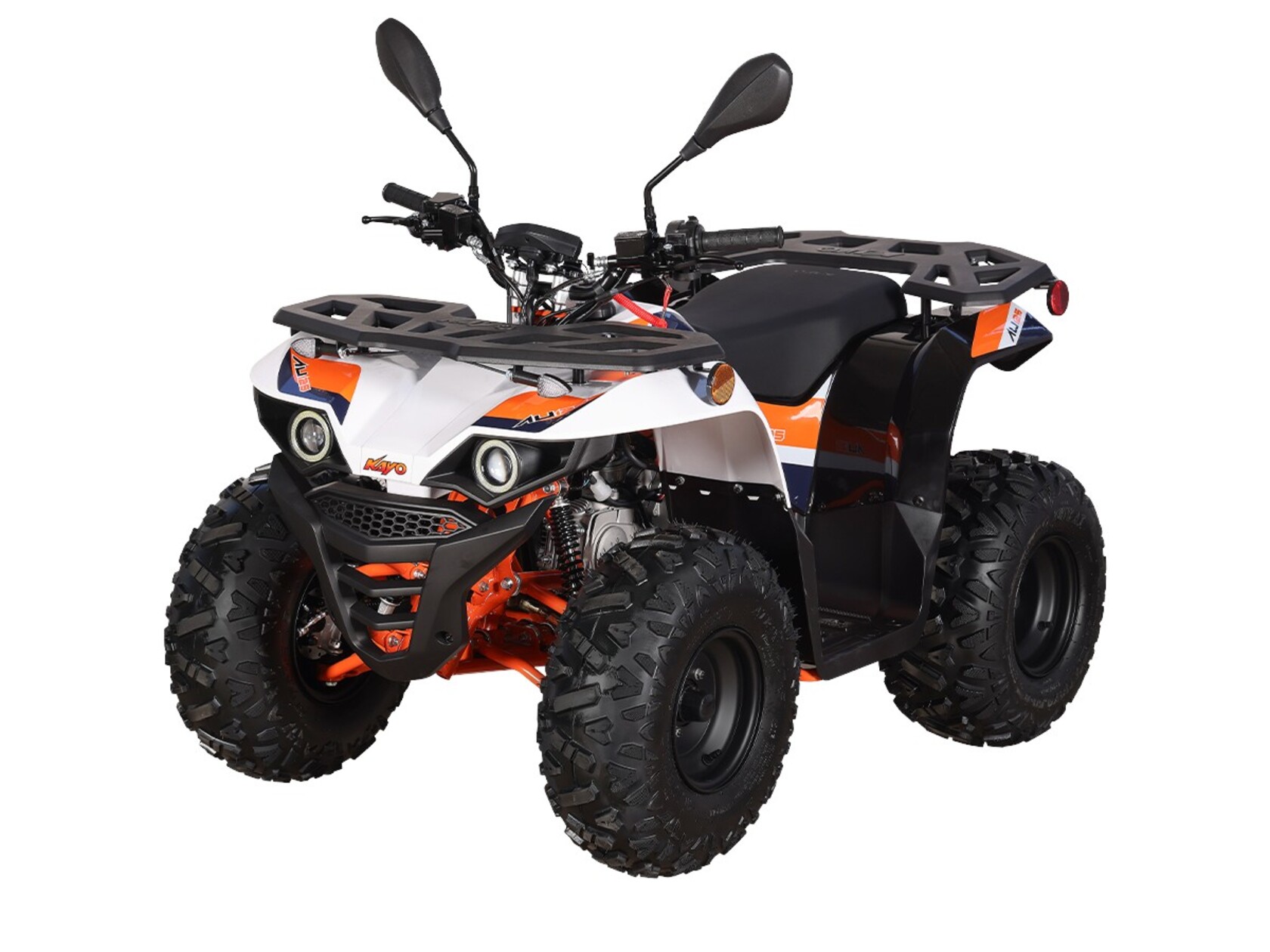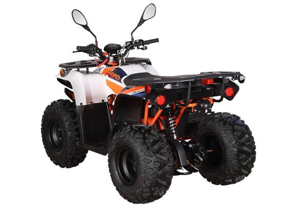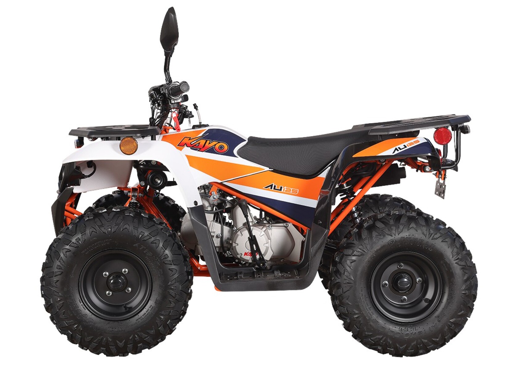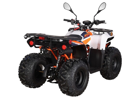 Квадроцикл KAYO AU125 – мощная внедорожная техника для весёлых заездов на природе. Наличие ПТС позволяет ездить по дорогам общего пользования. Габариты и мощность подходят для использования квадроцикла детьми от 11 лет.Оснащён одноцилиндровым 4-тактным двигателем YX154FMI объёмом 120 см³ с воздушным типом охлаждения. Обеспечивает мощность в 7,9 л.с. За подачу топлива отвечает карбюратор JK PZ22WL. Обеспечивает бесперебойную работу в самых жёстких условиях, лёгок в обслуживании и неприхотлив к качеству топлива. Трансмиссия имеет цепную передачу и автоматическую коробку с реверсом и схемой F-N-R. Ёмкость бака 4,5 литра.Диаметр колёс 8 дюймов. Подвеска спереди и сзади представлена амортизаторами длиной 265 мм. За торможение отвечает дисковая гидравлическая система.Квадроцикл оснащён комплектом светотехники для поездок в тёмное время суток и по дорогам общего пользования.Габариты квадроцикла 1430х860х890 мм, вес 98 кг.