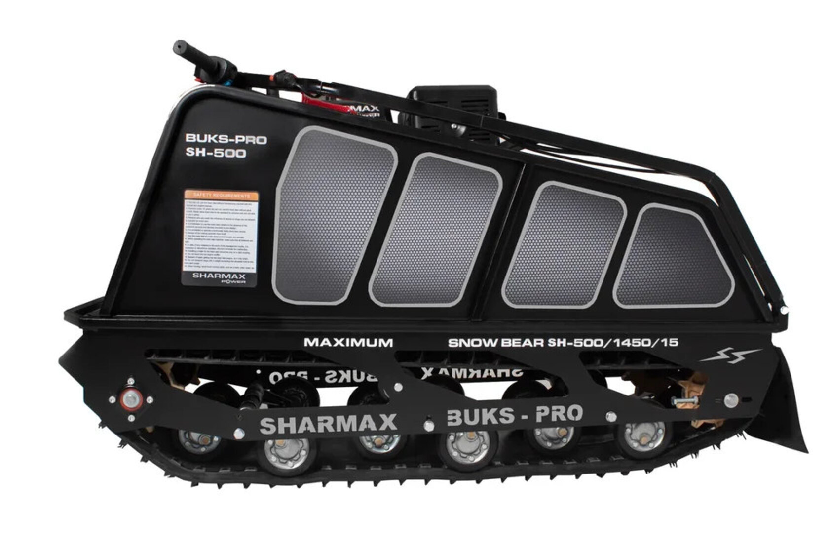 Мотобуксировщик SNOWBEAR SE500 1450 HP15 MAXIMUM настоящий помощник на охоте и рыбалке, решит множество задач в сельскохозяйственной деятельности. Идеальное сочетание цены и качества.Гусеница мотобуксировщиков “Sharmax” шириной 500 мм является надежной и универсальной. Обладает повышенной стойкостью к износу, а специальная форма протектора дает отличное сцепление с поверхностью, при этом сохраняя уверенную маневренность мотобуксировщика..