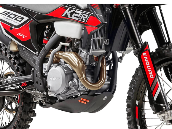 K2R 300 EFC одинаково хорошо подойдет как начинающим, так и продвинутым райдерам. Сердце модели - надежный,мощный, приемистый карбюраторный двигатель Zongshen 182MN.В базовое оснащение модели K2R 300 EFC входит все необходимое для полноценной езды: защита рук, защита радиатора и картера двигателя, защита прогрессии задней подвески, неломающиеся ручки тормоза и сцепления, power bomb на выпуске,датчик моточасов и светодиодная фара головного освещения.Высота мотоцикла по седлу составляет 960 мм