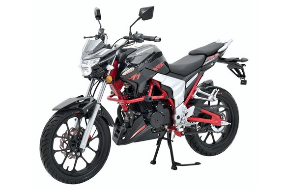 Мотоцикл Regulmoto Raptor 250 – популярная модель стрит-байка, завоевавшая признание множества поклонников двухколесной мототехники в различных странах мира. Данный мотоцикл вы можете купить в нашем мотосалоне или интернет-магазине с доставкой до терминала транспортной компании в вашем регионе.Regulmoto Raptor производится силами одного из крупнейших игроков китайской мотоиндустрии Senke. Специалисты компании основательно поработали как над современным дизайном мотоцикла, так и над его техническим оснащением. В раме байка стоит проверенный временем очень надежный и неприхотливый 4-тактный двигатель с воздушным охлаждением рабочим объемом в 250 см3. Наличие балансирного вала позволяет снизить до минимальных значений уровень вибраций при работе мотора, который в паре с дроссельным карбюратором способен демонстрировать до 19 «лошадей» максимальной мощности. Мотор можно запускать как при помощи кнопки электростартера, так и кик-стартером.Комфорт эксплуатации Regulmoto Raptor на асфальтированных дорогах и грунтовых проселках обеспечивает система амортизации мотоцикла, которую представляют моноамортизатор сзади и телескопическая вилка спереди. За безопасное использование отвечают дисковый тормоз в переднем колесе и барабанный тормоз в ступице заднего колеса. Этот современны и надежный мотоцикл станет отличным выбором транспортного средства для решения повседневных задач как в городе, так и за его пределами.