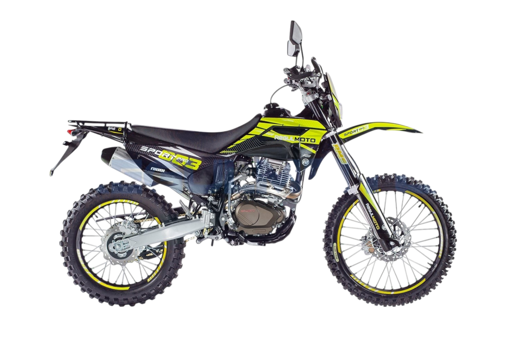 Мотоцикл Regulmoto Sport-003 PR PRO. - Двигатель 172, балансир, 300 поршевая Zongshen, алюминиевые обода, злая резина, новый пластик облицовки бензобака, колодки синтетика.Передние амортизаторы с быстрой регулировкой, 41мм. Алюминиевые диски из одного из самых прочных сплавов 7116. Из этого сплава производятся рули Renthal. Шины с увеличенными грунтозацепами, мягкий компаунд.