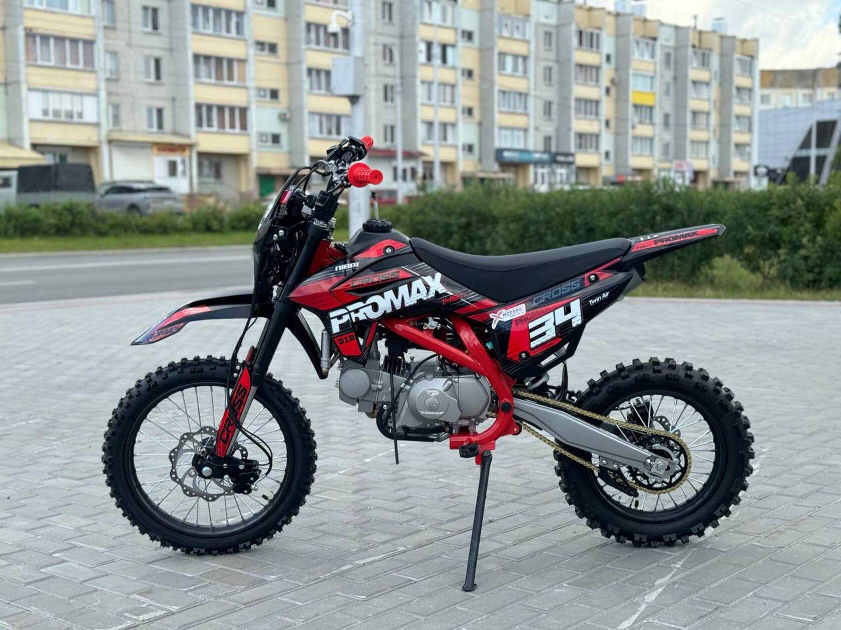 PROMAX CROSS 145CC— идеальный питбайк высокого качества, лучший вариант для поклонников адреналиновых приключений!Тайваньское качество повреждённое 3-х летней гарантией!Рама из хромомолибденового сплава.Усиленная дуплексная рама изготовлена из качественного хромомолибденового сплава, поэтому байк получился прочным и одновременно лёгким. Идельный баланс рамы, достигнут благодоря запатентованной системе пространственного с строения рамы компании PROMAX!Двигатель ТОПОВЫЙ ZONSHENG!Питбайк оснащён обновленным ДВС ZONSHENG, это самая ТОП-овая модель двигателя для питбайков. Рабочим объёмом 125 кубов и мощностью 13 л. с. Новая системе хромирования керамикой, поверхности цилиндра увеличивает ресурс двигателя в разы, при этом двигатель может работать на предельно высоких оборотах длительное время, не допуская перегрева ЦПГ.Передняя подвескаВилка перевёрнутого типа (диаметр стакана составляет 45-47 мм, диаметр штока амортизатора — 33 мм) длиной 730 мм имеет жёсткую конструкцию и отличается эффективной управляемостью. Может похвастаться более продуктивной обратной связью с дорогой по сравнению с телескопической вилкой.Задняя подвескаЗадняя подвеска (диаметр штока 12 мм) с регулировкой преднатяга пружины помогает питбайку не вилять на поворотах и стабильно проходить все сложные участки трассы. Стальной маятник изготовлен из надёжного хромомолибденового сплава.КарбюраторНа питбайке установлен ТОПОВЫЙ карбюратор NIBBI (USA), это лучшие карбюраторы для внедорожных мотоциклов которые используются также в YAMAHA, HONDA и т.д. Важнейшее отличие от аналогов, то, что карбюраторы NIBBI надежно подают топливную смесь при любом наклоне мотоцикла.КолёсаУдлиненная колесная база 1220 мм увеличивает устойчивость питбайка и позволяет гонщику комфортно держаться даже на раскисших от дождя дорогах. Диаметр колёс составляет 17/14 дюймов.РульАлюминиевый руль с перемычкой выдержит большие нагрузки и останется цел в случае даже очень жёстких падений.ДизайнСовременный дизайн придётся по душе самым искушенным спортсменам. Плавные изгибы, эффектная графика создают ощущение лёгкости и маневренности. Идеально для экстремального катания.
